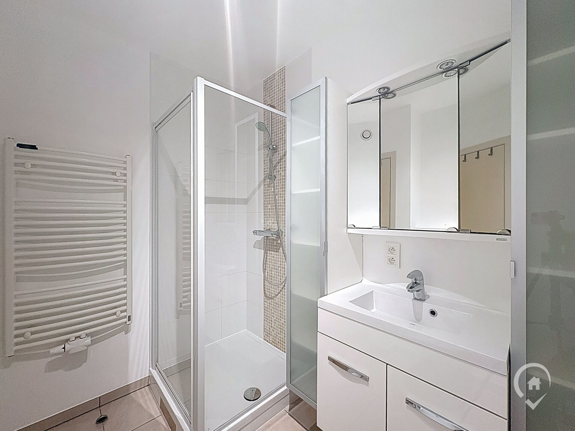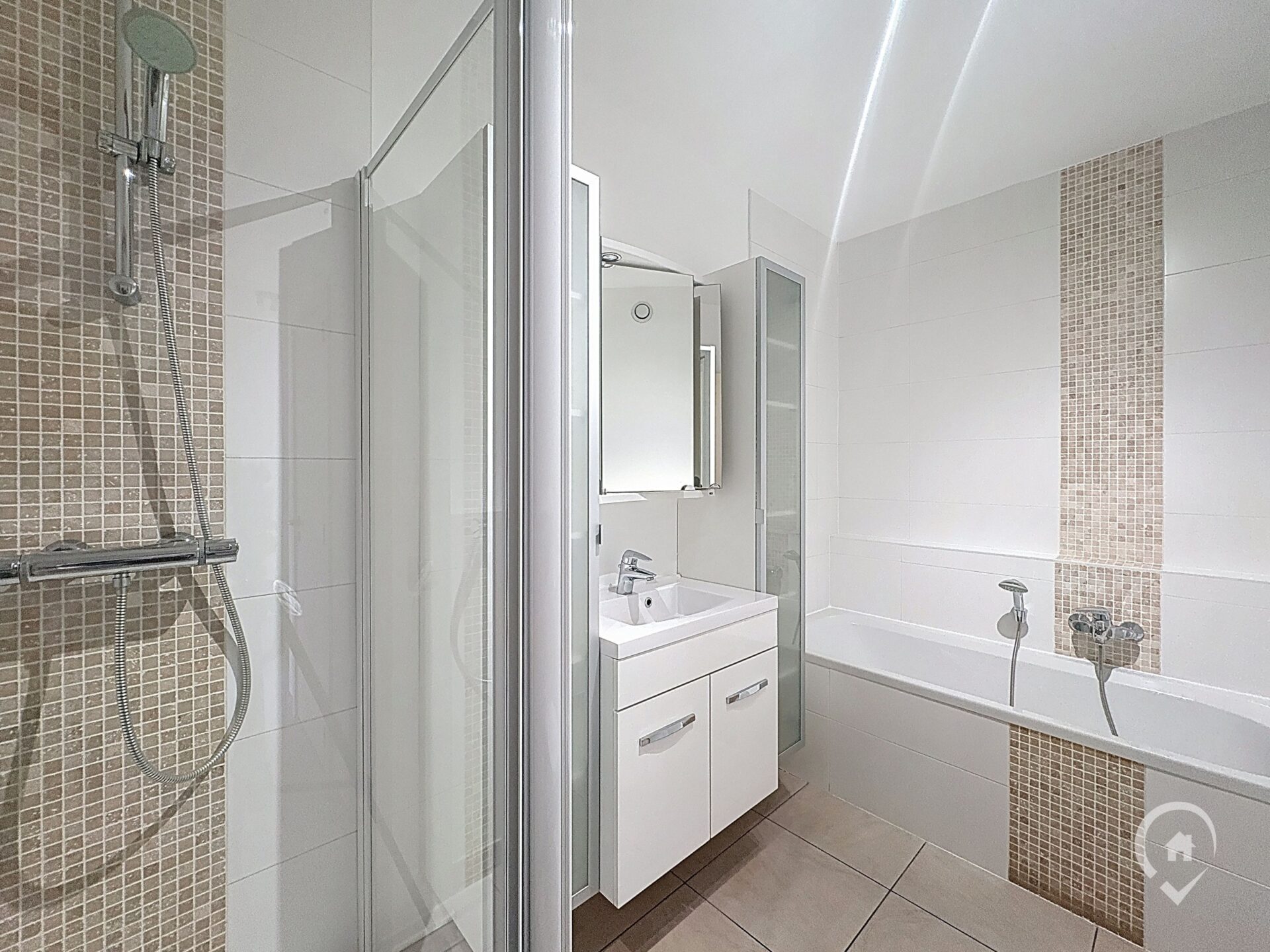 Composition : une belle pièce de vie, une salle de douche avec un WC et une baignoire, un joli balcon, une buanderie, 1 chambre et une pièce supplémentaire (bureau / dressing / chambre enfant). Extérieur : une place de parking extérieure privative, un local vélo et un local poubelle.