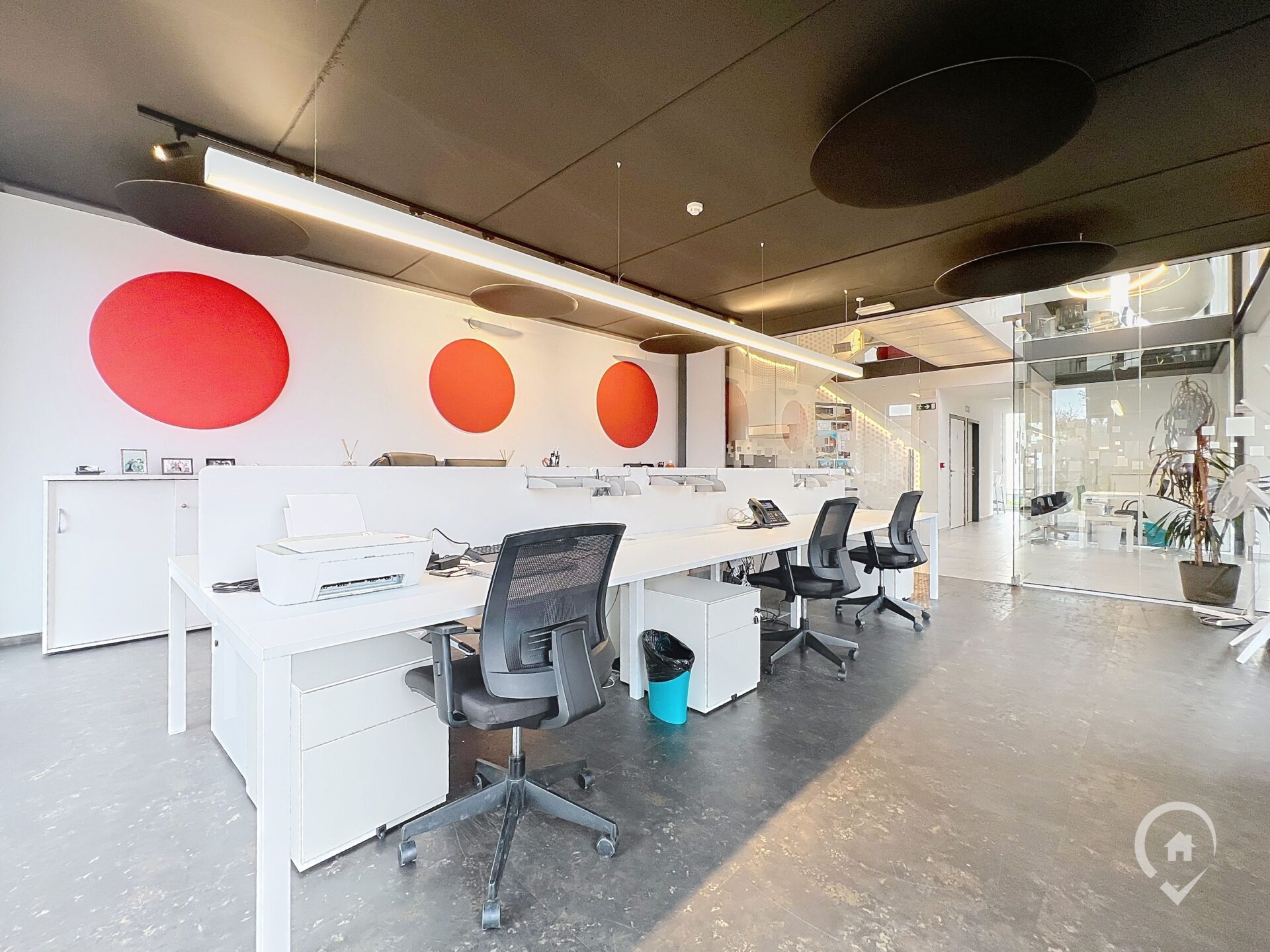 Situé dans un bâtiment neuf, tout le confort est là (chauffage par le sol, domotique, …). Un vaste parking est également mis à disposition. Deux bureaux individuels sont également disponibles en supplément.