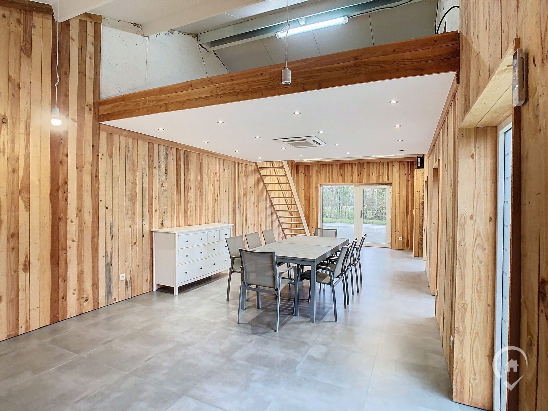 Composition : bel espace principal avec évier, rangement, WC indépendant, mezzanine pouvant faire office de rangement/stockage et 4 emplacements de parking