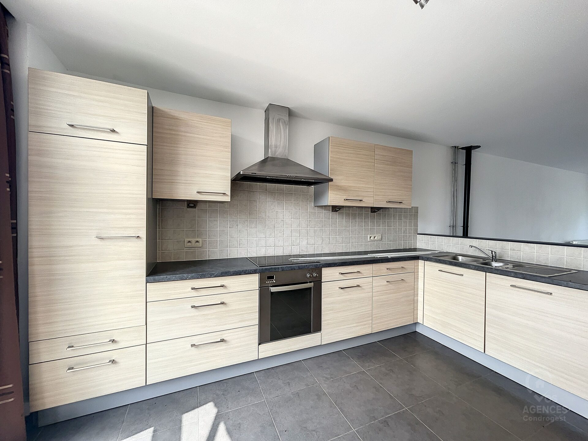 Remarques : maison récente – compteur bi-horaire – châssis double vitrage (PVC) – loyer 810€ – charges individuelles – bail d’un an renouvelable – participation état des lieux entrée + sortie (combinés) : 275€ – libre immédiatement.