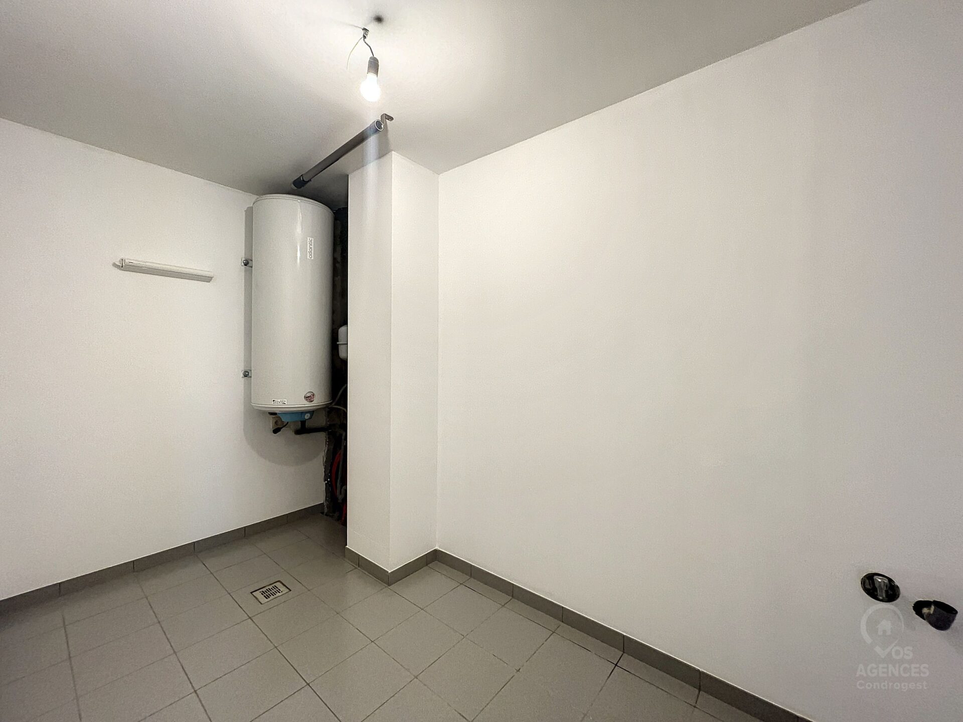 – 1er étage : 1 chambre spacieuse, une grande buanderie et une salle de bains avec meuble lavabo et WC individuel;