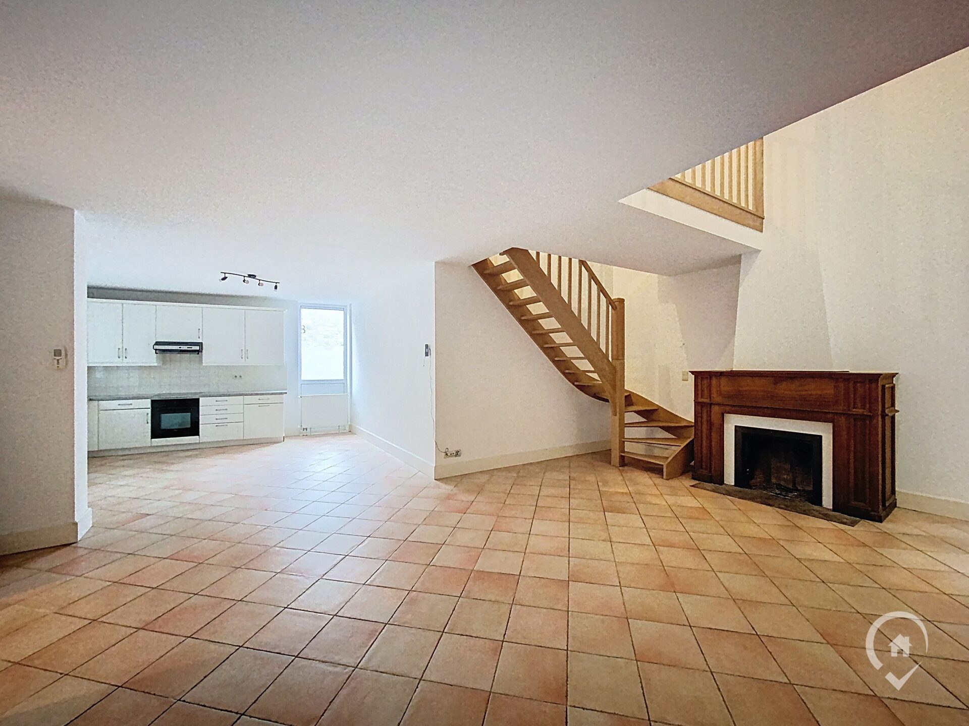 – Rez-de-chaussée : hall d’entrée, WC séparé, spacieux et lumineux séjour agrémenté d’un poêle à pellets, cuisine équipée avec lave-vaisselle et accès à une petite terrasse.