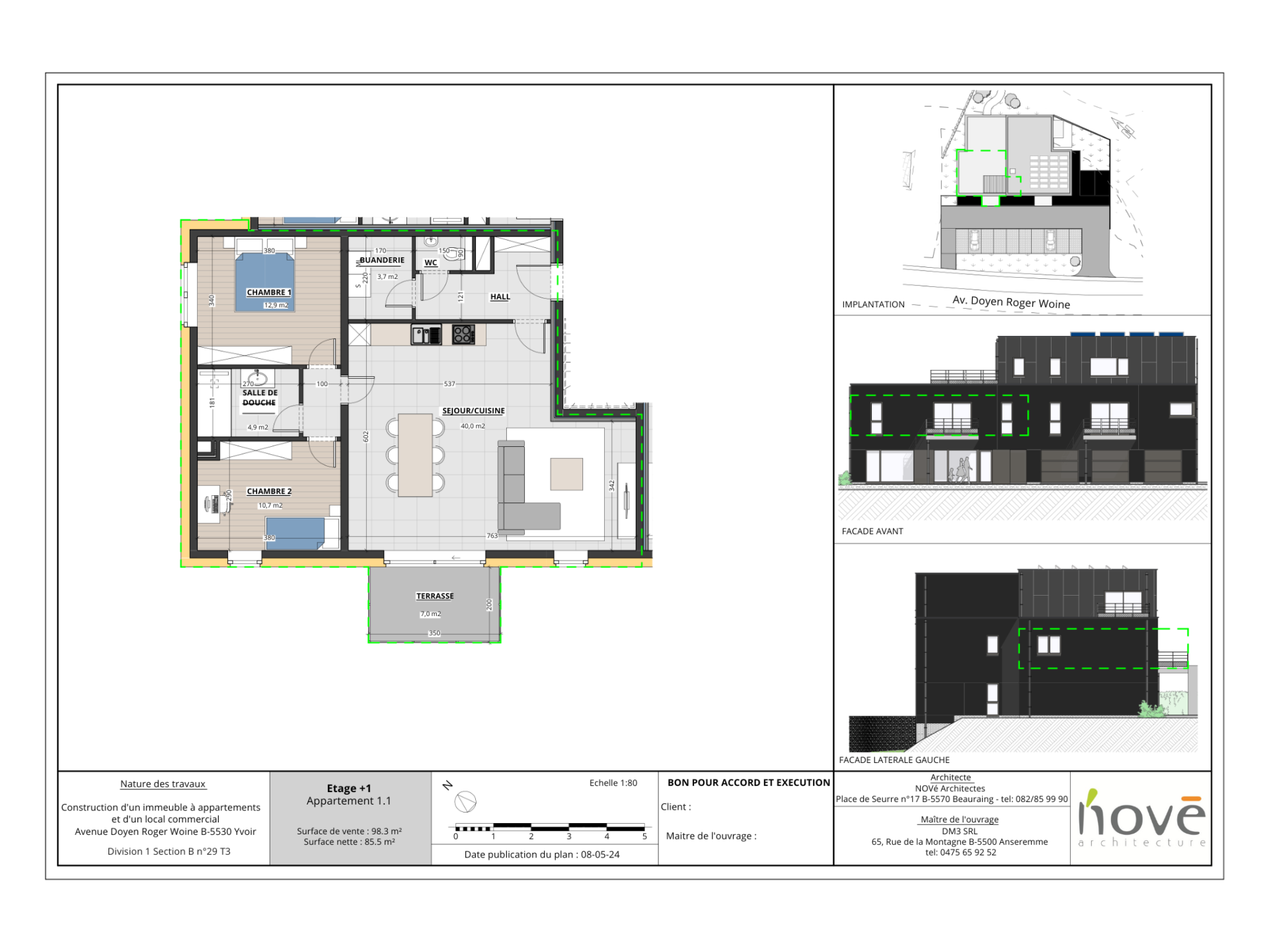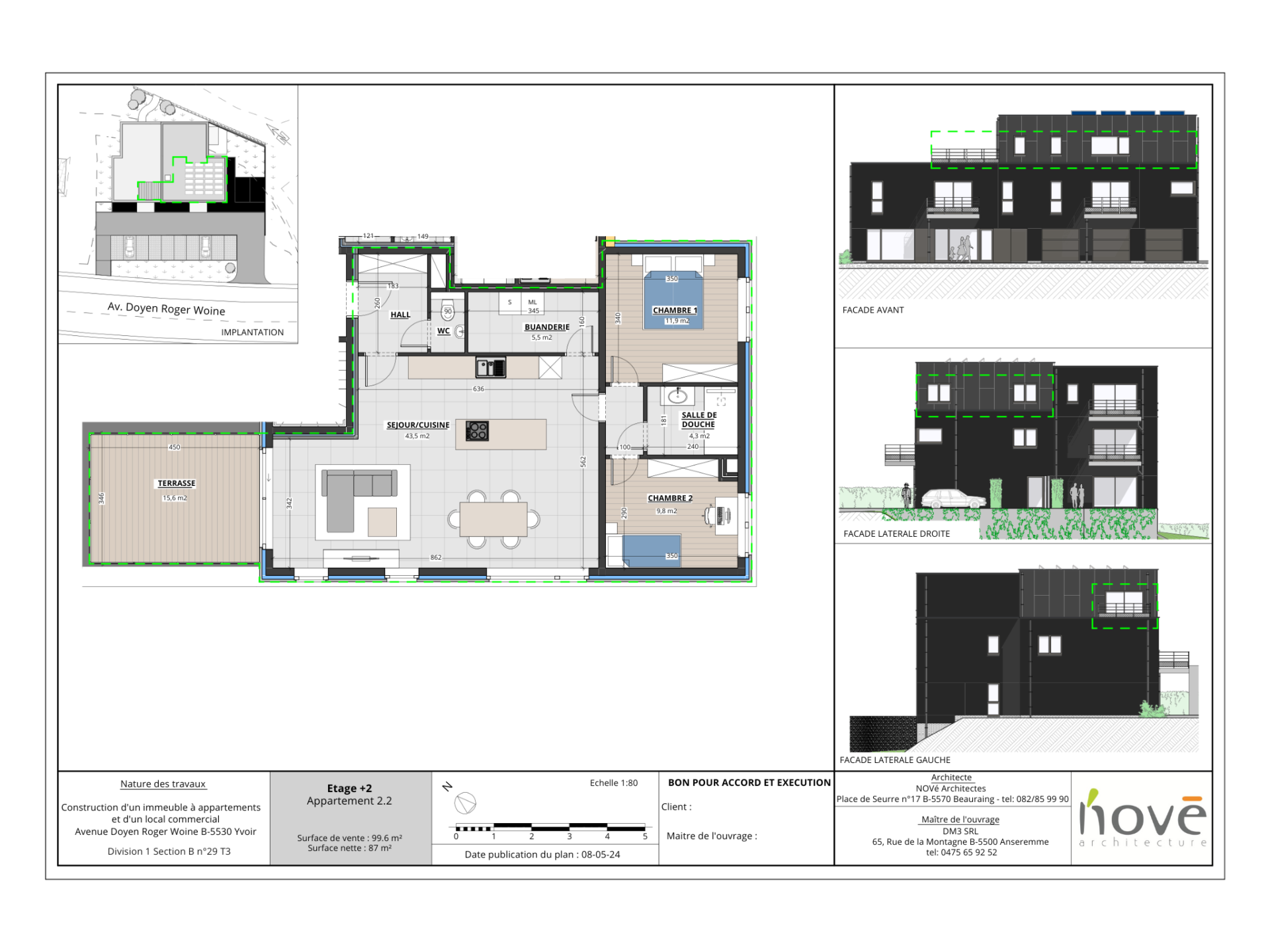 Vos Agences Condrogest Dinant vous présente ce projet neuf situé à Yvoir, à proximité de la Meuse, et composé de 7 appartements tout conforts. L’architecture a été soignée et se veut moderne. Les finitions seront de standing et les matériaux de qualité. Au niveau des techniques, tout a été pensé pour minimiser les coûts en matière de chauffage (panneaux, pompe à chaleur, chauffage par le sol, isolation, …). Livraison prévue pour le XXX 2025.