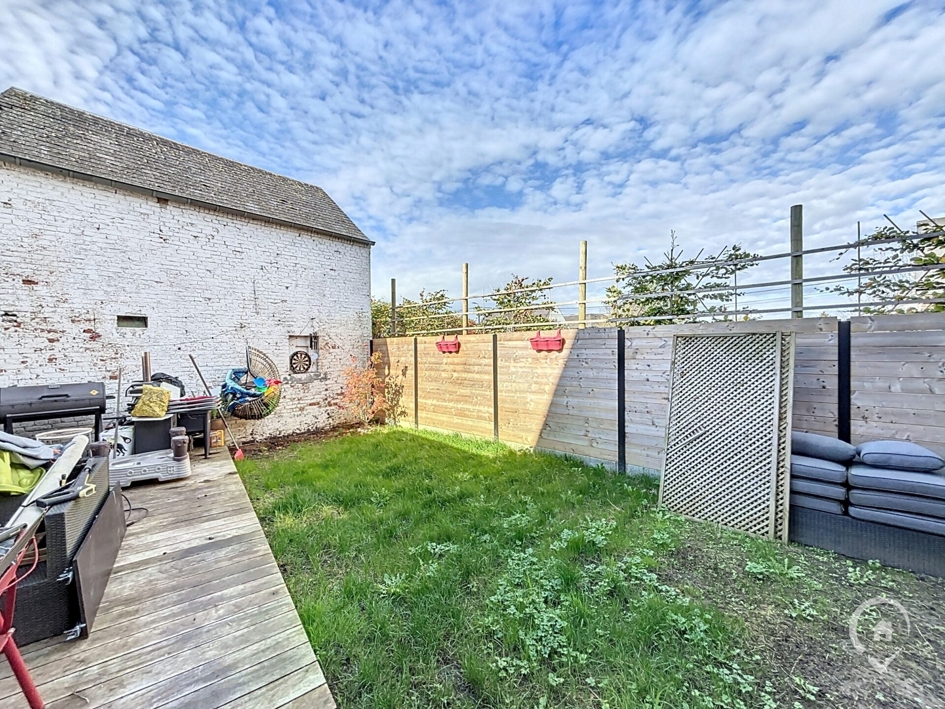 – Extérieur : terrasse, jardin, parking en façade.