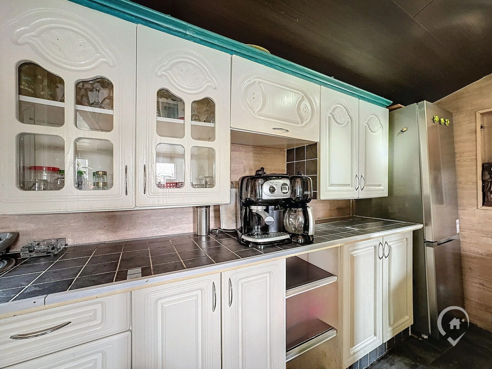 Composition : salon, salle à manger, cuisine semi équipée, 1 chambre, salle de bain et chaufferie.