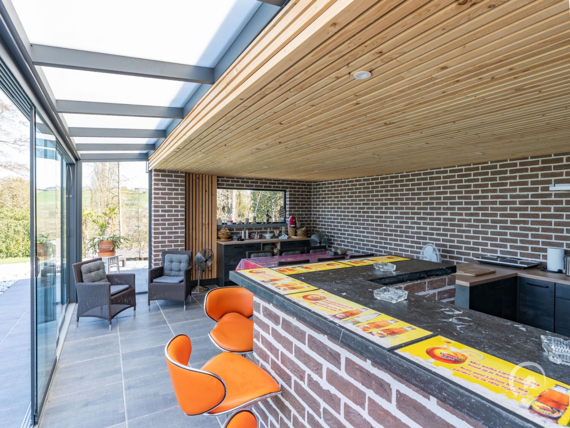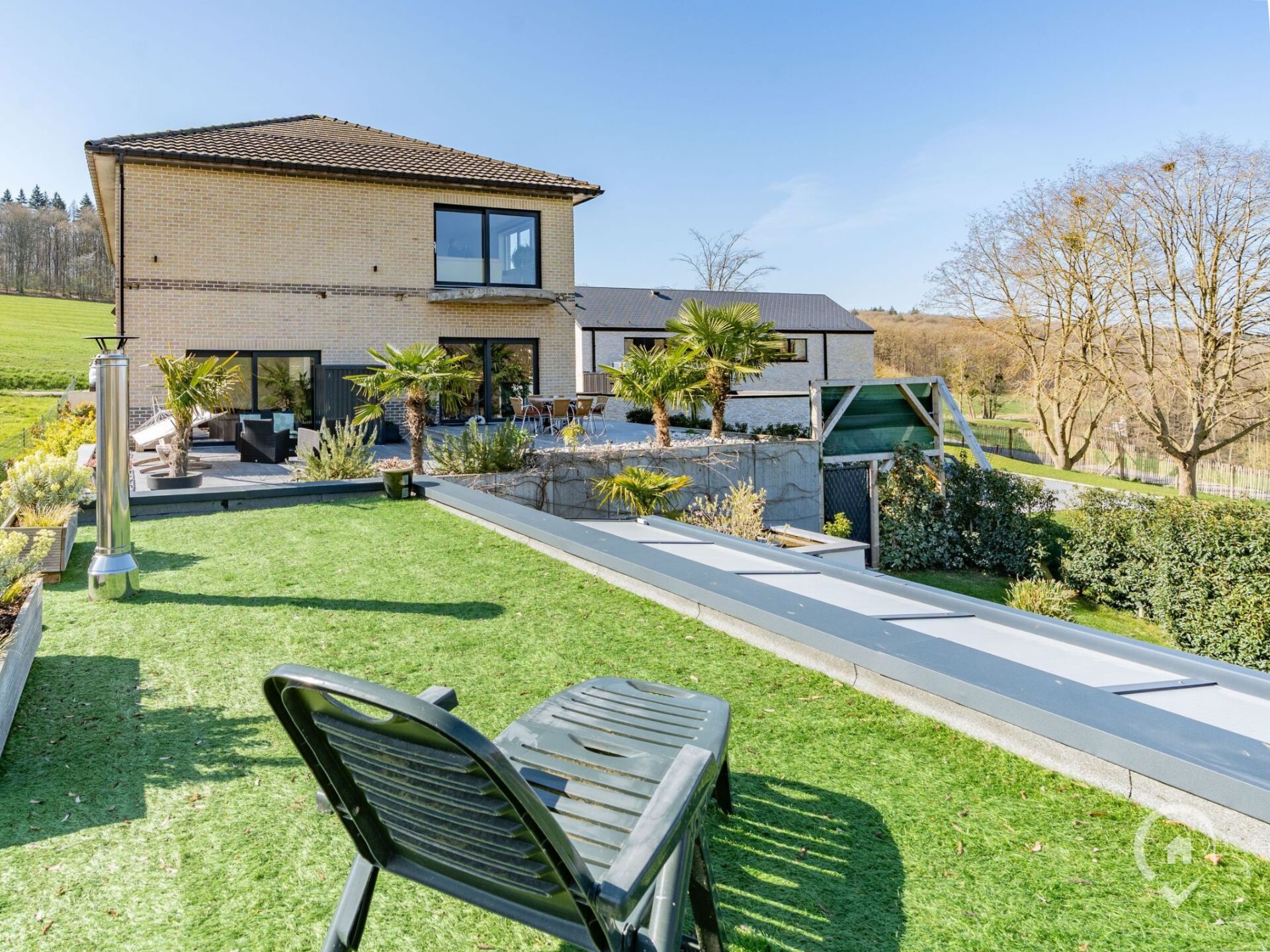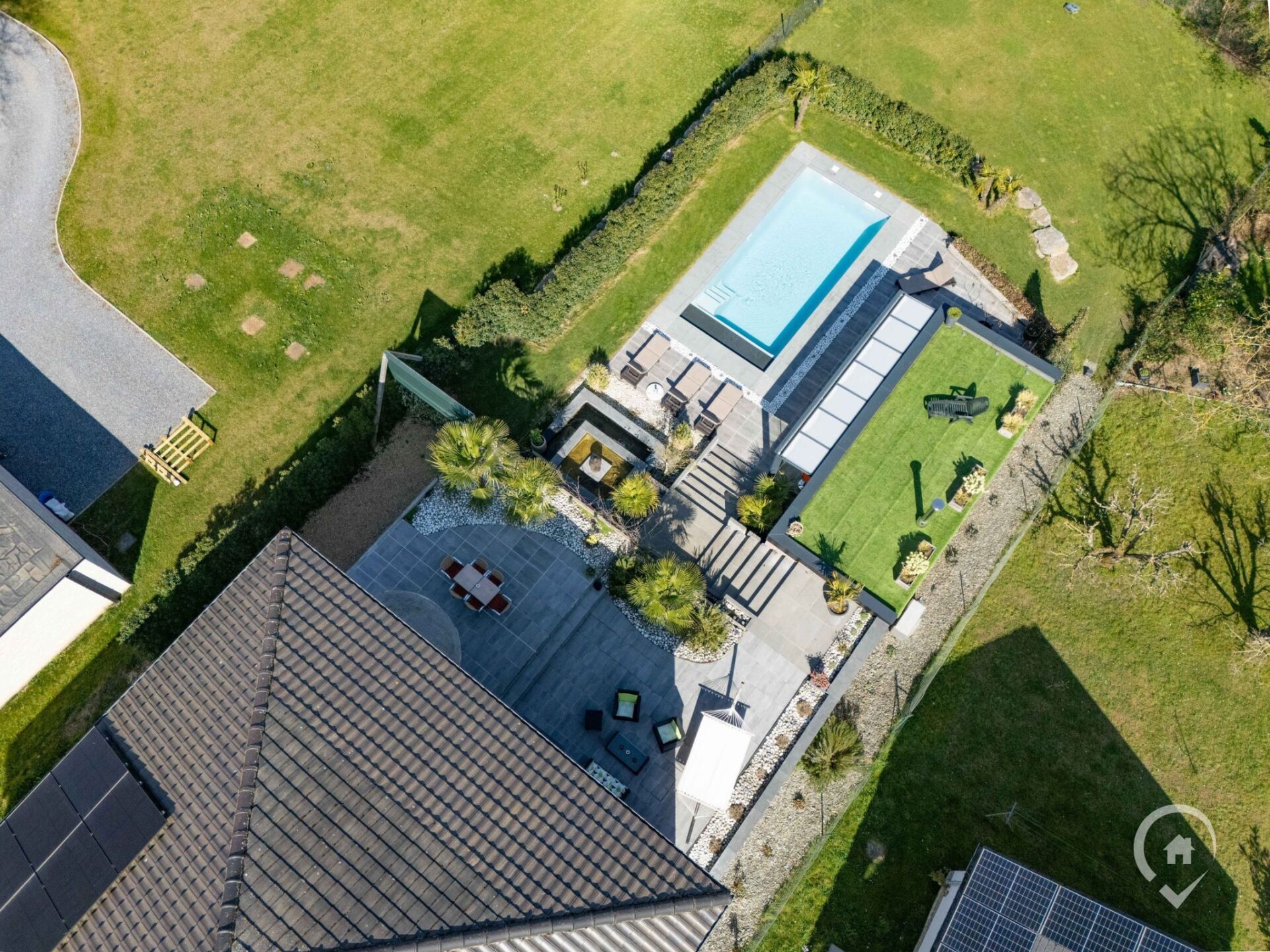 Remarques: PEB B – 23 panneaux photovoltaïques (100% autonome notamment pour chauffer la piscine) – pool-house de 44 m² avec four à pizza et plancha – chauffage central par le sol sur les deux niveaux (citerne à gaz enterrée) – système de ventilation double flux – double vitrage PVC – piscine de mars 2022 – microstation d’épuration individuelle – robot tondeuse – propriété clôturée – porte de garage électrique