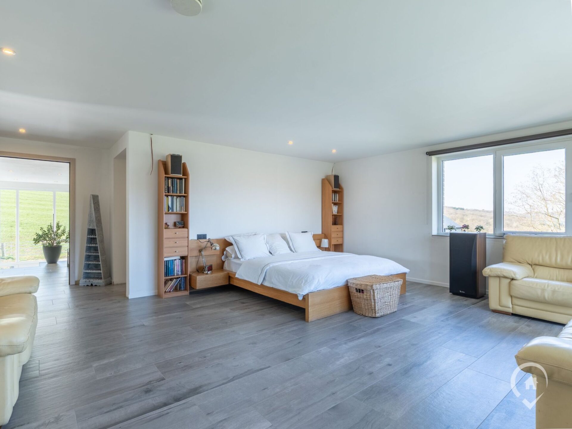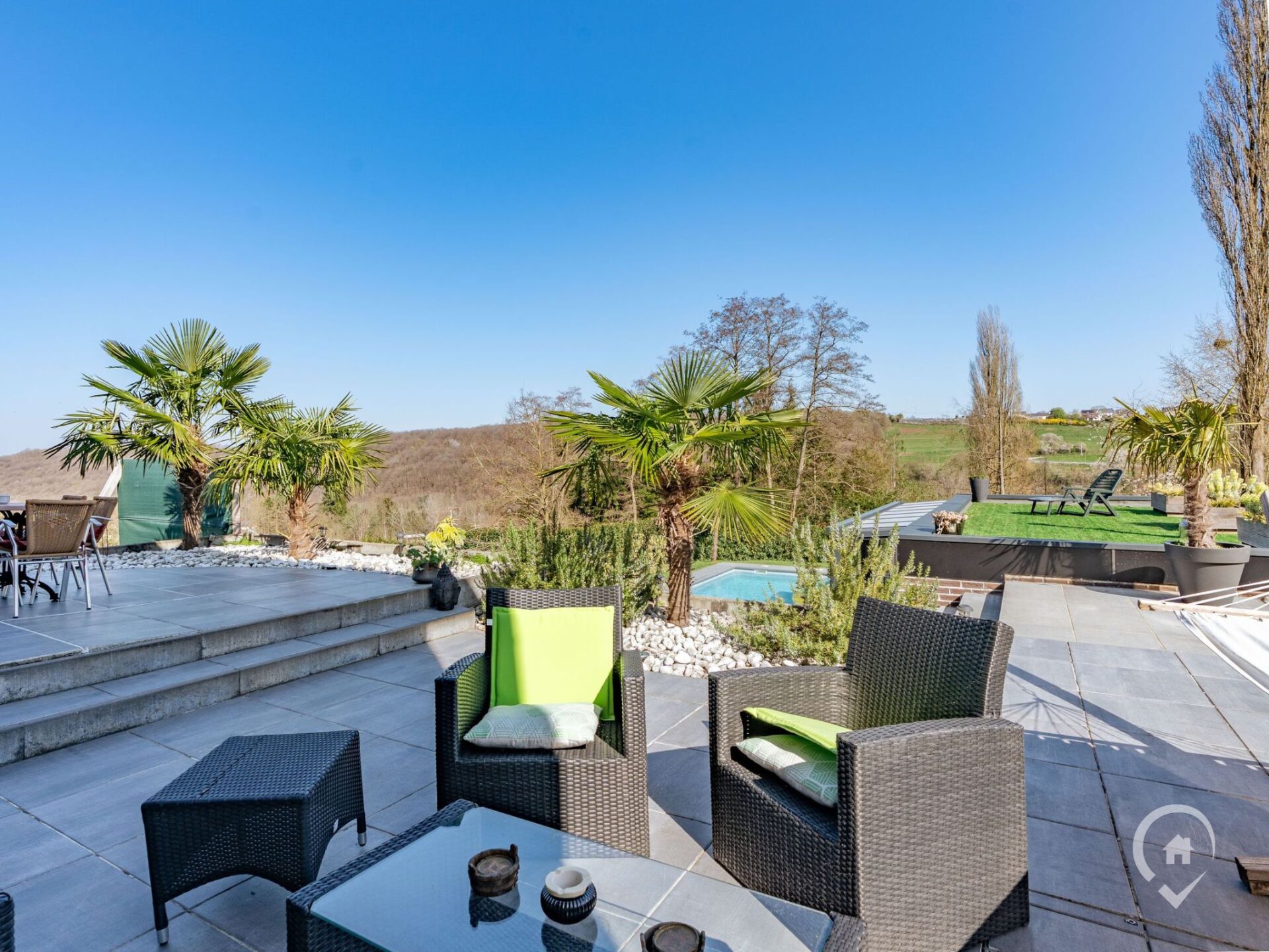 SOUS OPTION !!! Vos Agences Immo A.H.T. vous présente cette magnifique villa de 260 m² habitables parfaitement située à Dave, sur le dessus de Namur. Ce bien exclusif mets à votre disposition de nombreux atouts : des caves de 140 m² sous toute la superficie, une magnifique piscine avec son pool house équipé, 3 chambres, 3 salles de bains, dressing, un garage de 27 m², de nombreuses places de parking et plusieurs terrasses. Ce bien d’exception est également autonome d’un point de vue consommation d’électricité et dispose d’un PEB B. Vous disposez également d’un chauffage par le sol intégral sur les deux niveaux de vie. Ce bien conviendra également parfaitement aux personnes souhaitant exercer une profession libérale via l’accès donnant aux caves aménageables.