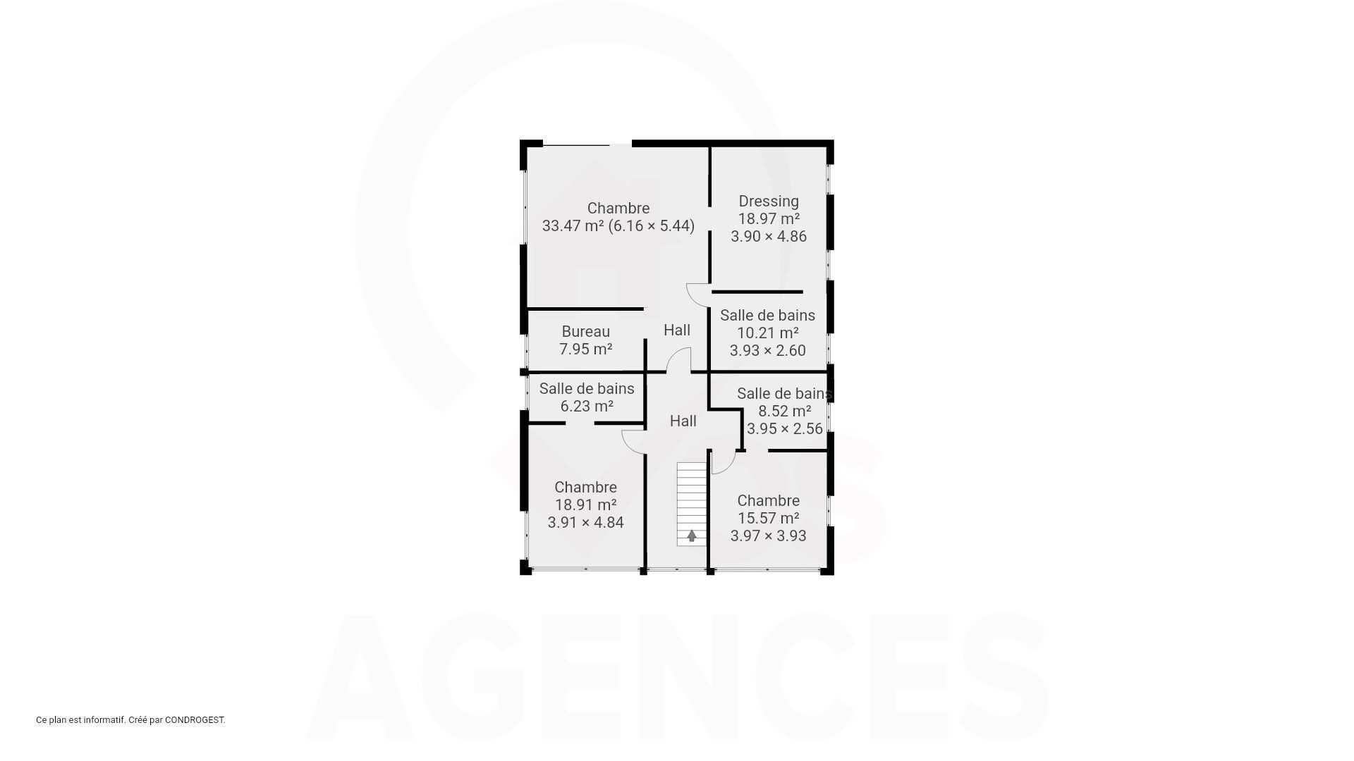 – 1er étage: spacieux hall de nuit, 3 grandes chambres disposant chacune de sa salle de bain , un dressing et un bureau.