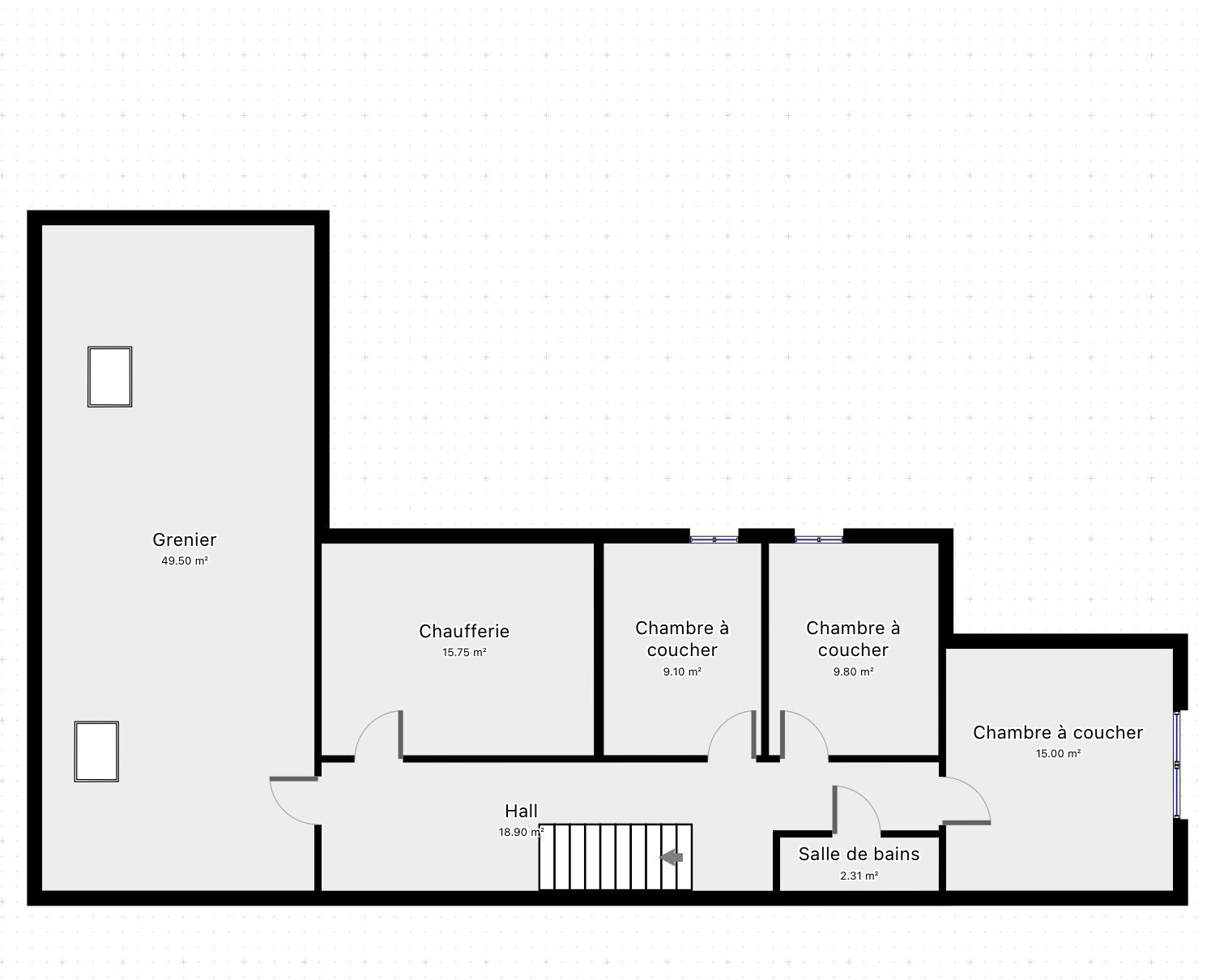 – 1er étage : 2 chambres, salle de douche, chaufferie et grenier aménageable ;