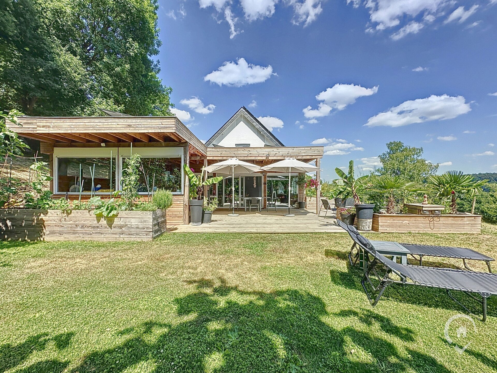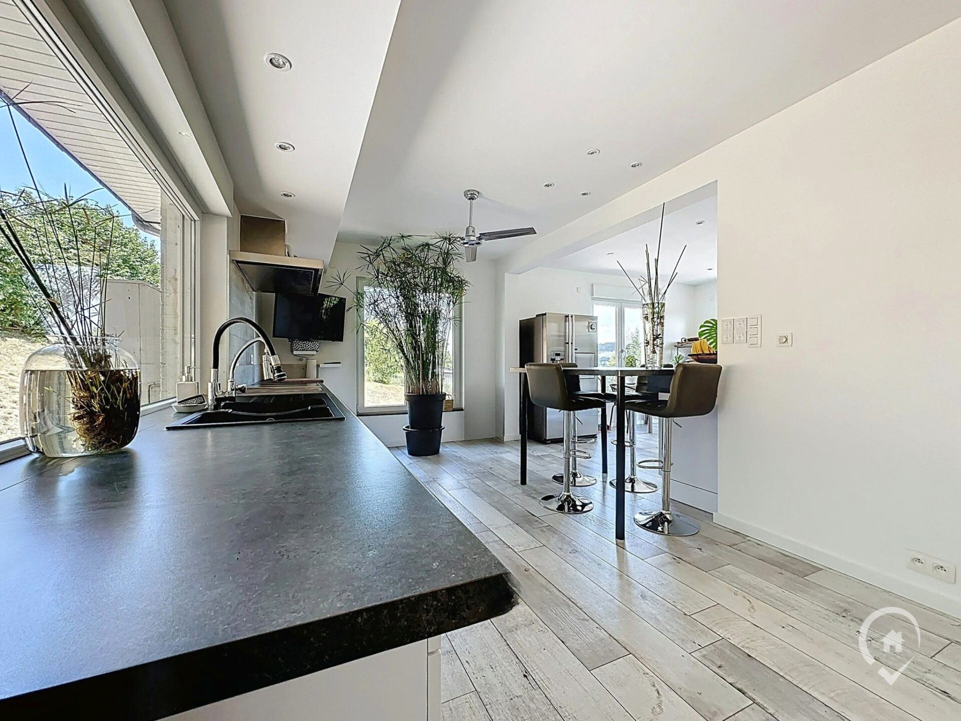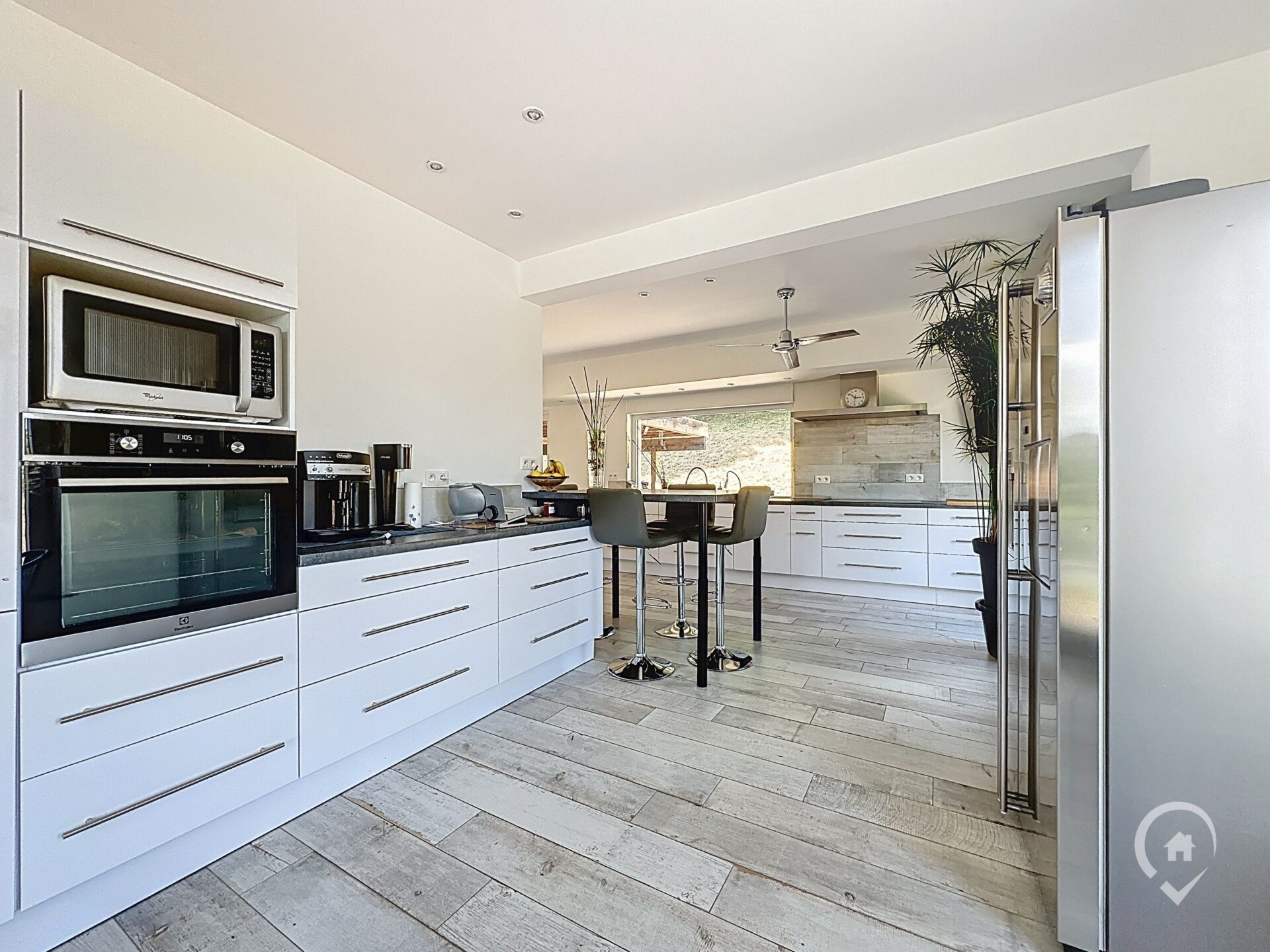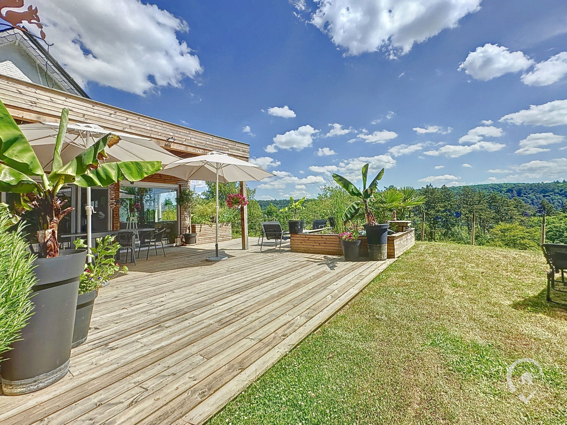 Vos Agences Condrogest Marche vous présente cette propriété unique nichée sur les hauteurs de la vallée de l’Ourthe, avec une vue imprenable et dégagée, le tout sur un terrain de près de 1 hectare 27 ares 58 centiares. Rénovée en profondeur en 2021, cette villa contemporaine allie confort moderne et performance énergétique (PEB: B), grâce notamment à ses 35 panneaux photovoltaïques (10.000 kW), sa pompe à chaleur, son chauffage par le sol sur dalle isolée, sa nouvelle toiture isolée et son système de récupération d’eau de pluie. Les espaces de vie sont baignés de lumière naturelle et s’ouvrent sur une superbe terrasse couverte de plus de 70 m², véritable pièce de vie à part entière pour le petit-déjeuner, apéritif entre amis ou encore cuisiner en plein air grâce à la cuisine extérieure.