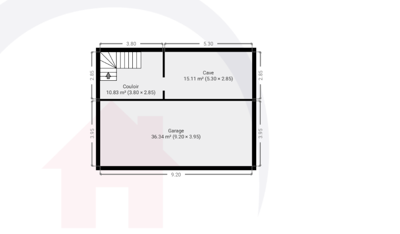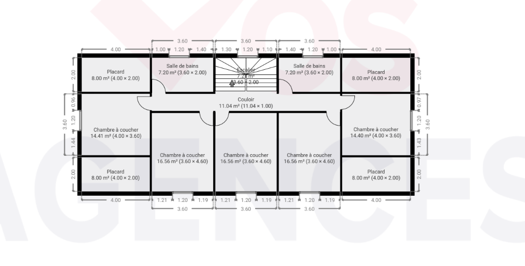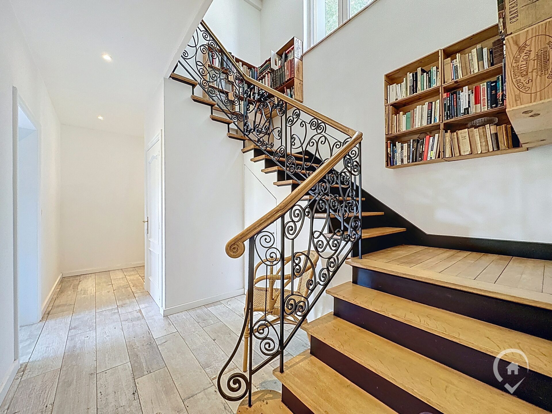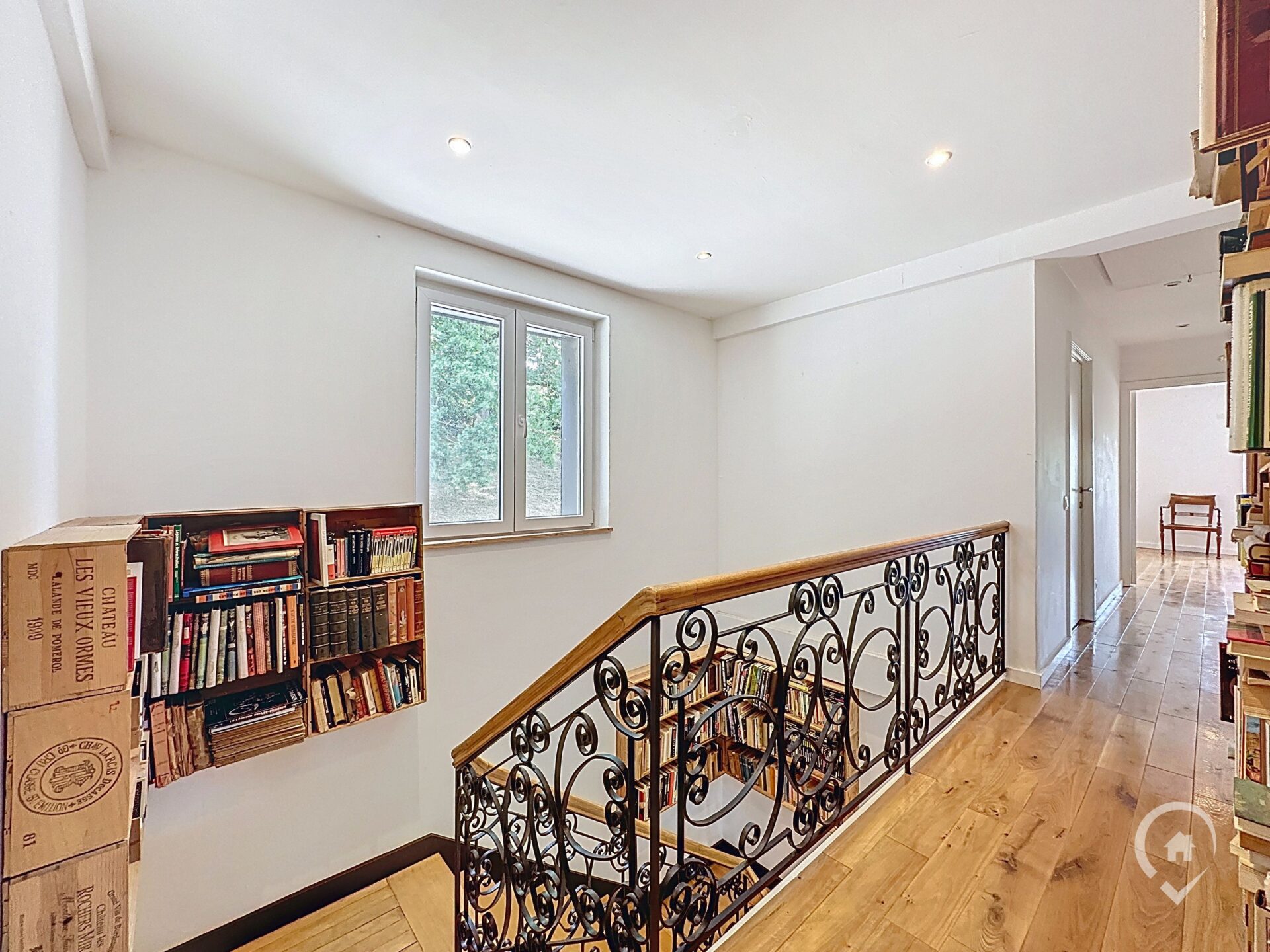 – 1er étage : hall de nuit, 5 chambres (dont une utilisée comme buanderie), salle de douche avec WC, salle de bains avec WC ;