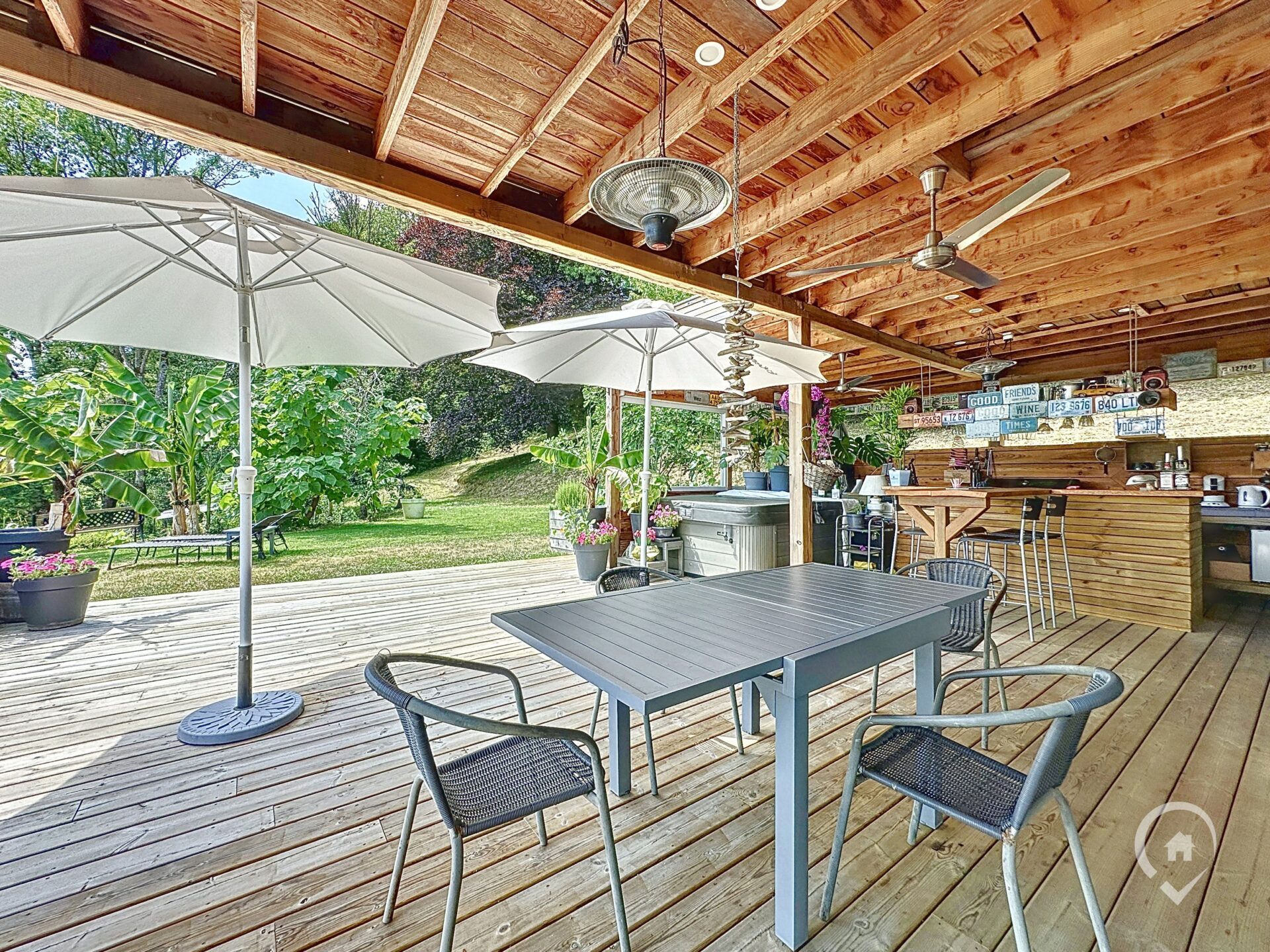 – Extérieur : chemin d’accès privatif, grande terrasse couverte avec cuisine extérieure, bergerie, carport, serre, potager, verger, hangars, bois, prairie.
