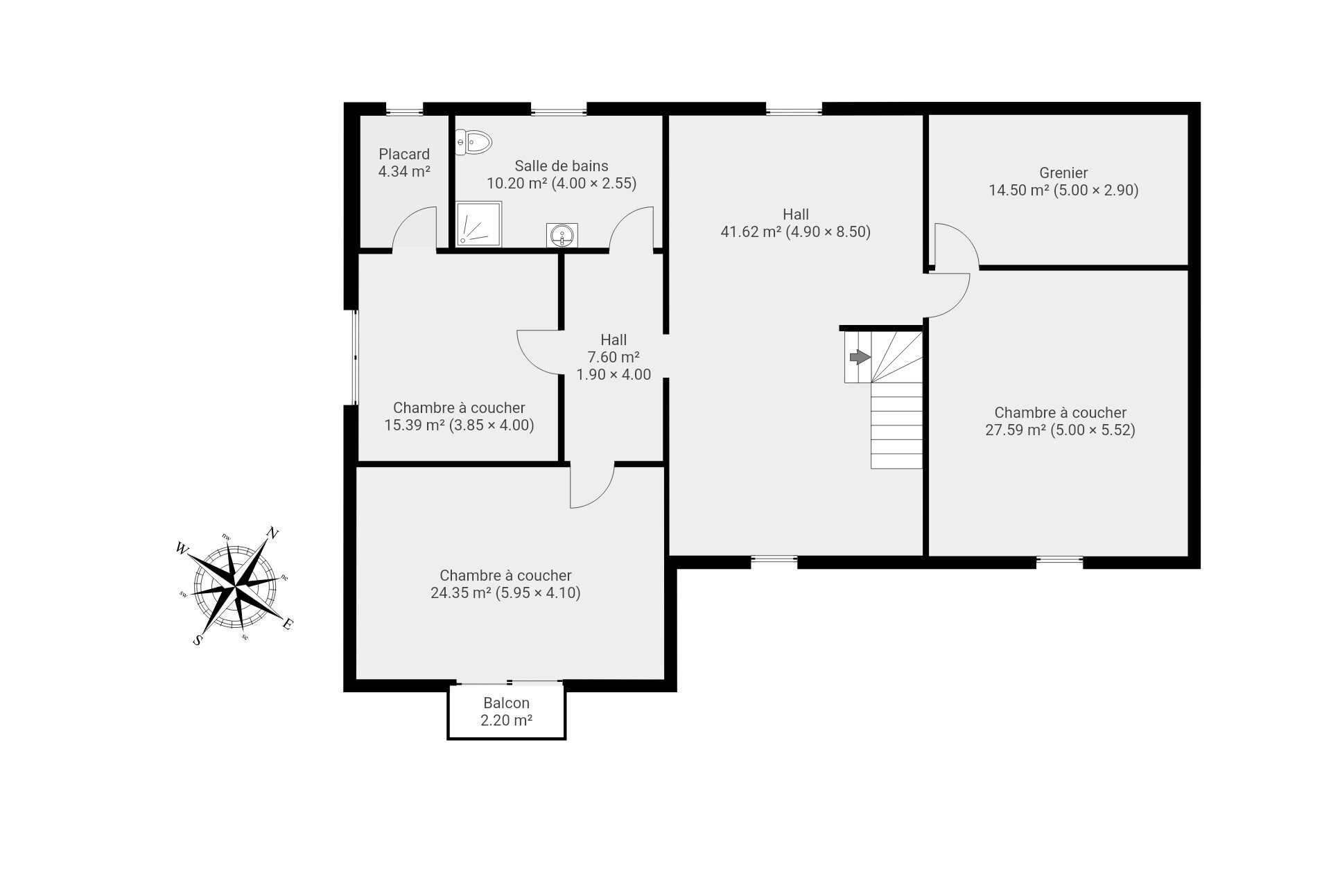– Etage : vaste hall de nuit, 3 chambres et salle de bain ;