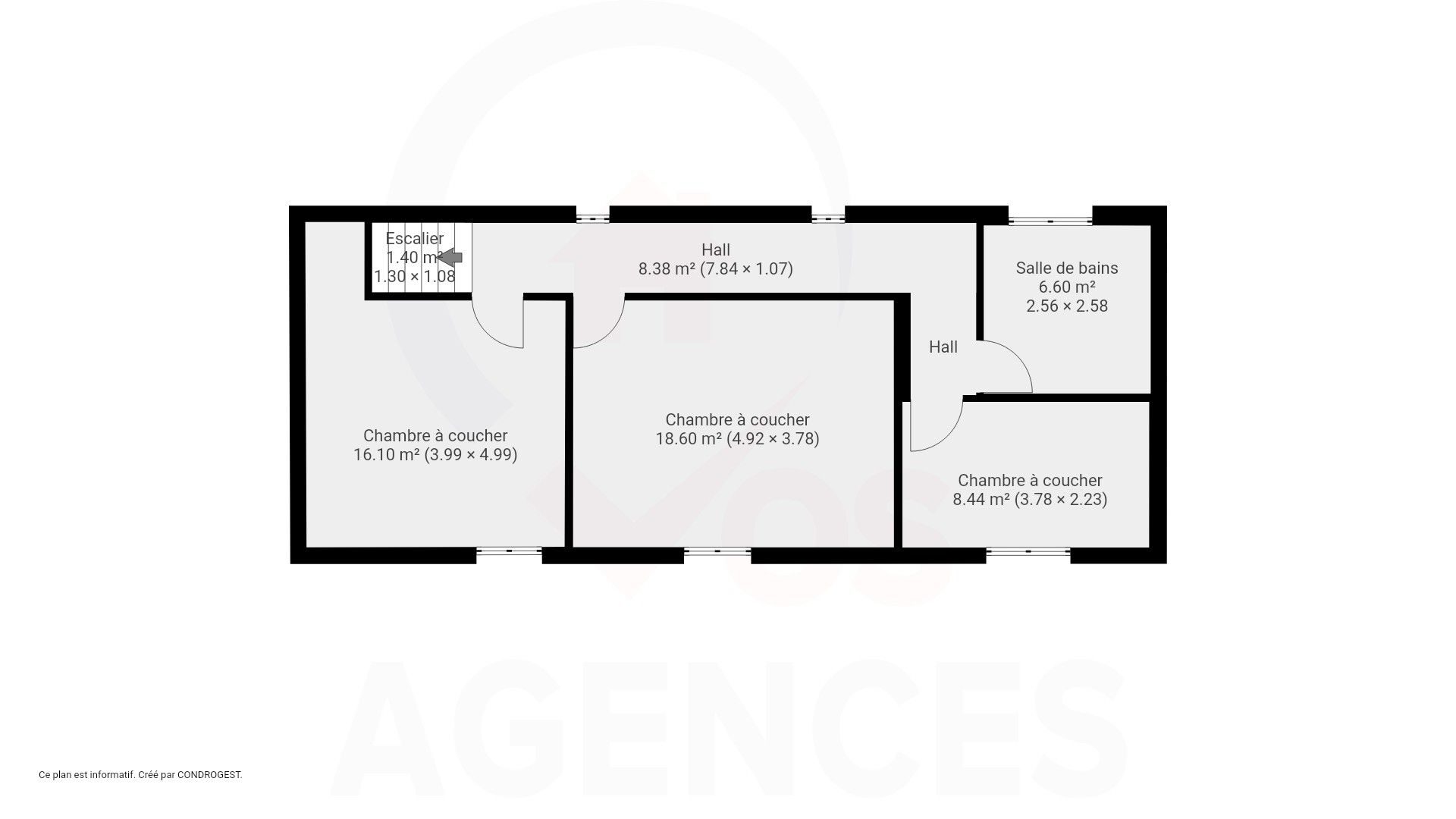 – 1er étage: hall de nuit, 3 belles chambres et une salle de bain.