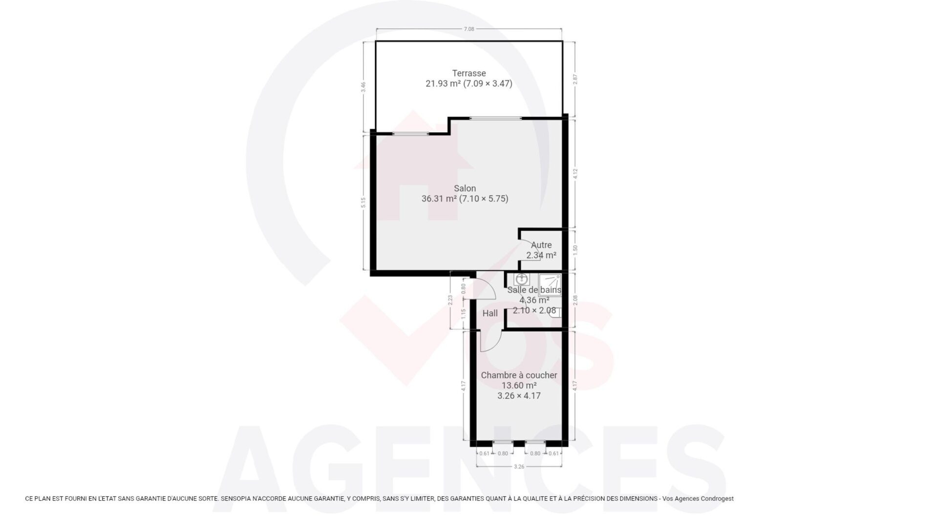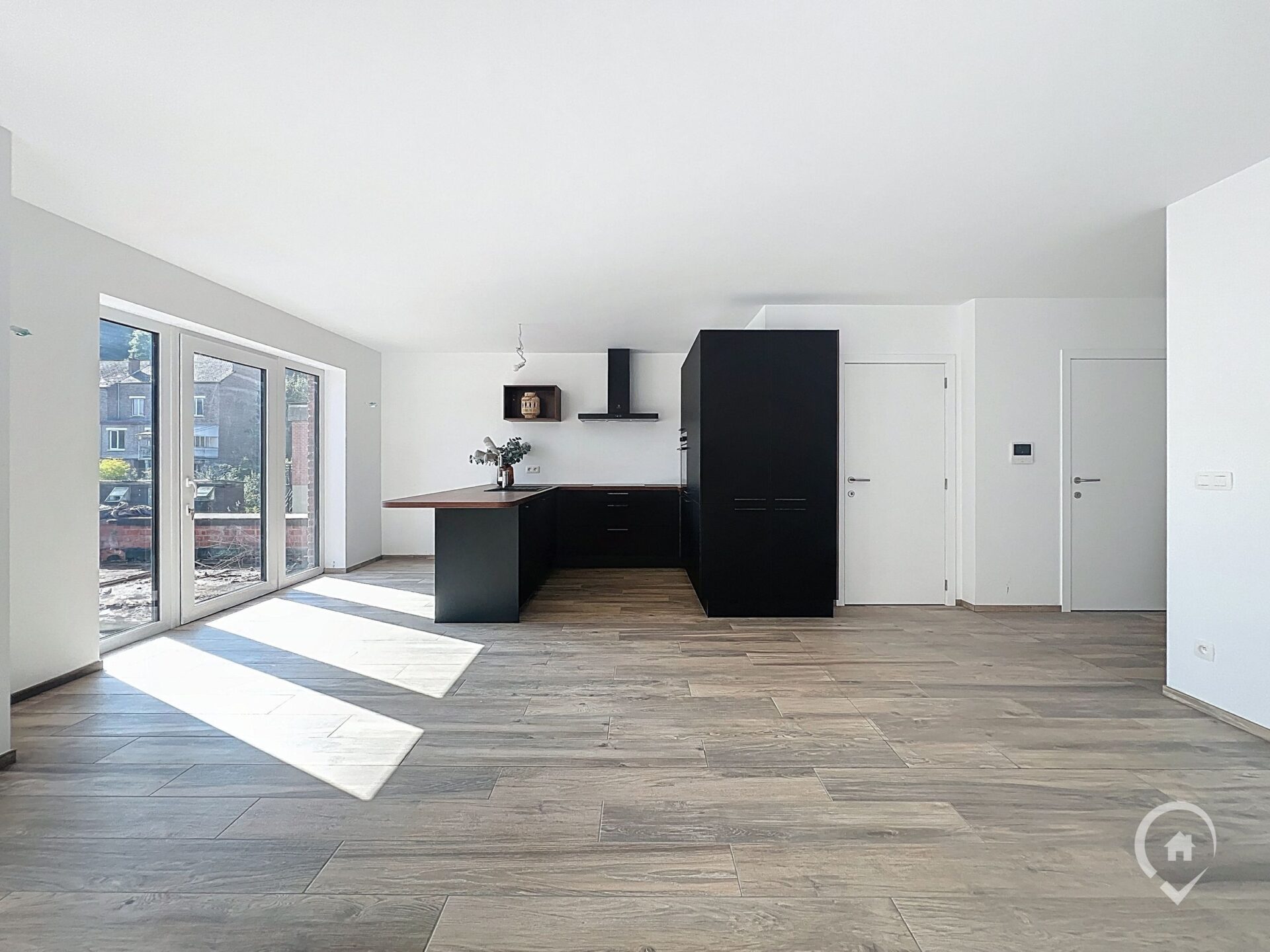 Composition : hall, grand séjour ouvert avec salon et cuisine équipée, terrasse de +/- 21 m², buanderie / local technique, salle de bain et une chambre. Cave privative de 4,30 m² (au rez-de-chaussée).