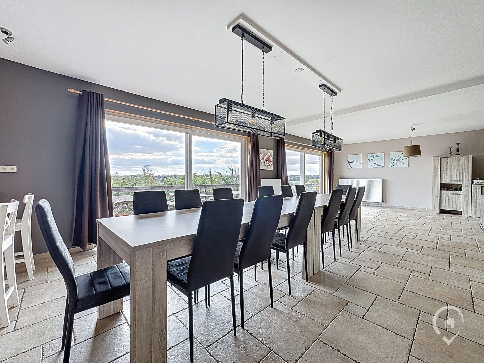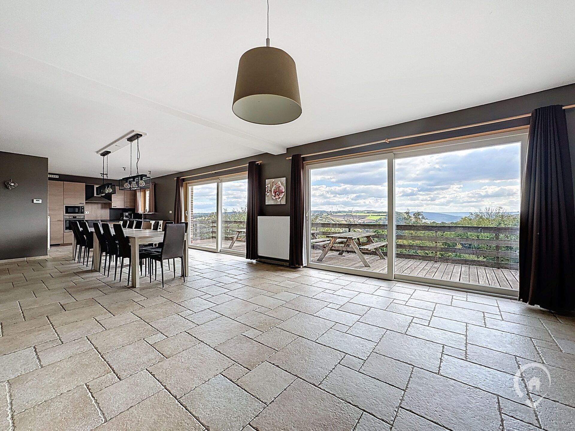 Vos Agences Condrogest vous propose cette magnifique villa offrant une vue à 180° absolument imprenable sur la vallée et les collines environnantes de la vallée de la Meuse. Construite avec des matériaux de qualité et bénéficiant d’une excellente performance énergétique (PEB B), cette maison combine confort moderne, luminosité et cadre naturel exceptionnel. La villa bénéficie d’une superficie généreuse de 235 m² habitables, son agencement est idéal pour une famille recomposée ou un projet de location touristique (Airbnb). Nombreux atouts : spacieuse terrasse de 33m² exposée plein sud, de grandes baies vitrées sur les pièces de vie laissant entrée le soleil,… Nombreuses activités touristiques et de plein air : balades en forêt, randonnées, circuits vélo, découvertes du patrimoine local. Faire offre à partir de 399.000€