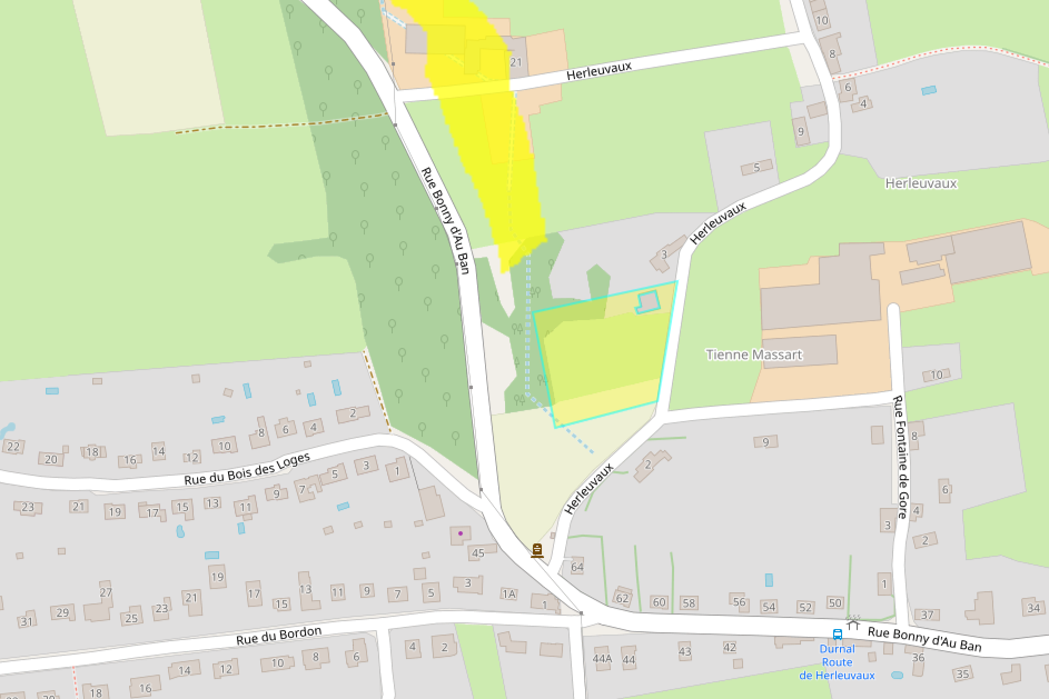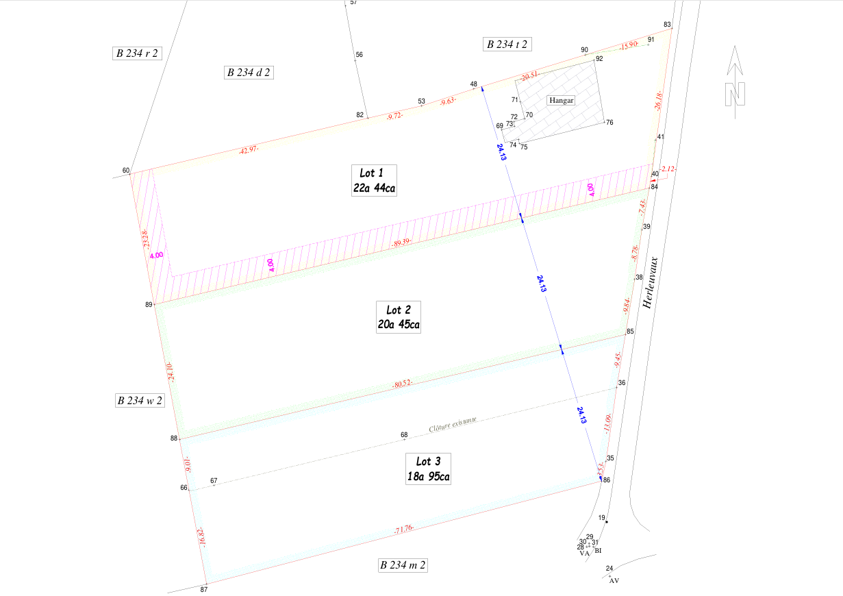 Superficie totale du terrain 20,45 ares – Largeur de 25 mètre de façade sur une profondeur moyenne : 85 mètres – Orientation arrière : Ouest – Zone au plan de secteur : Zone d’habitat et zone agricole – Environnement : rural – Dénivelé : plat – Libre d’occupation pour la partie constructible et bail à ferme sur la partie agricole – Libre de constructeur.