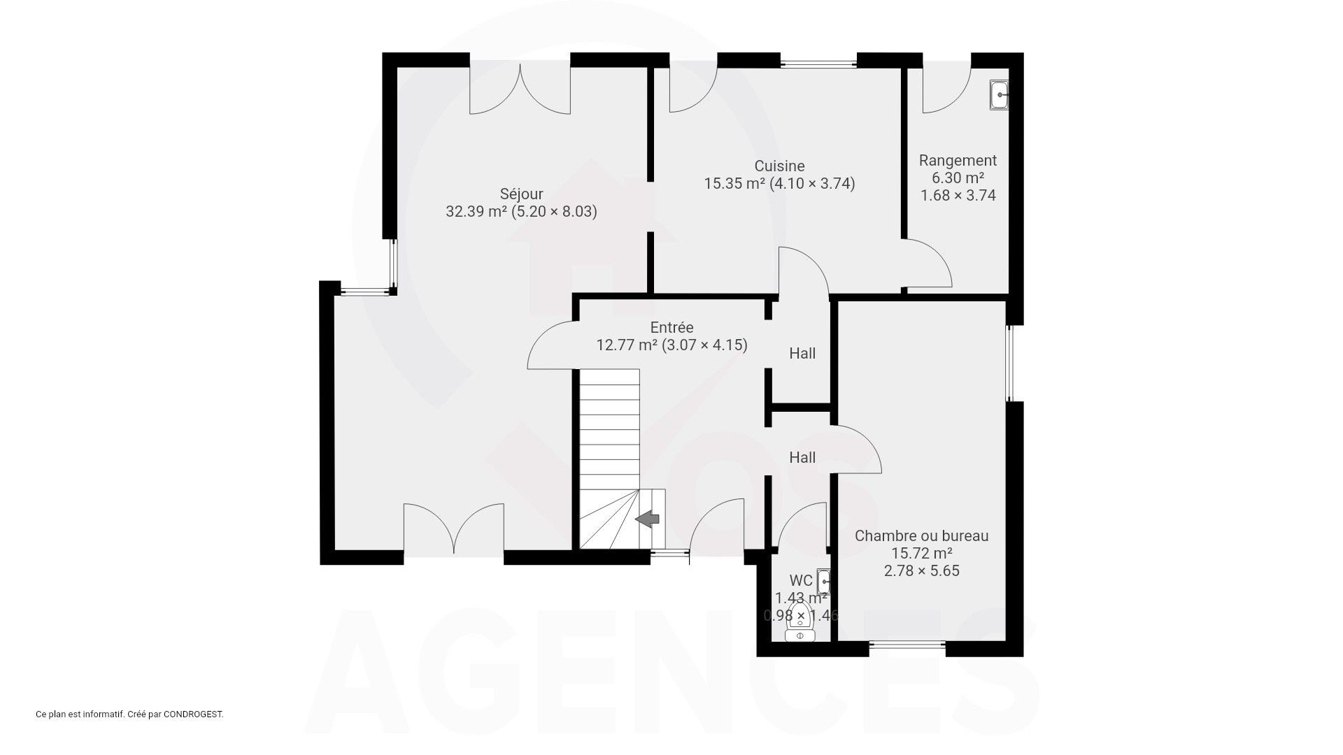 – Rez-de-chaussée: hall d’entrée, grand et lumineux séjour, cuisine, buanderie/rangement, un bureau (ou chambre) et un WC indépendant ;