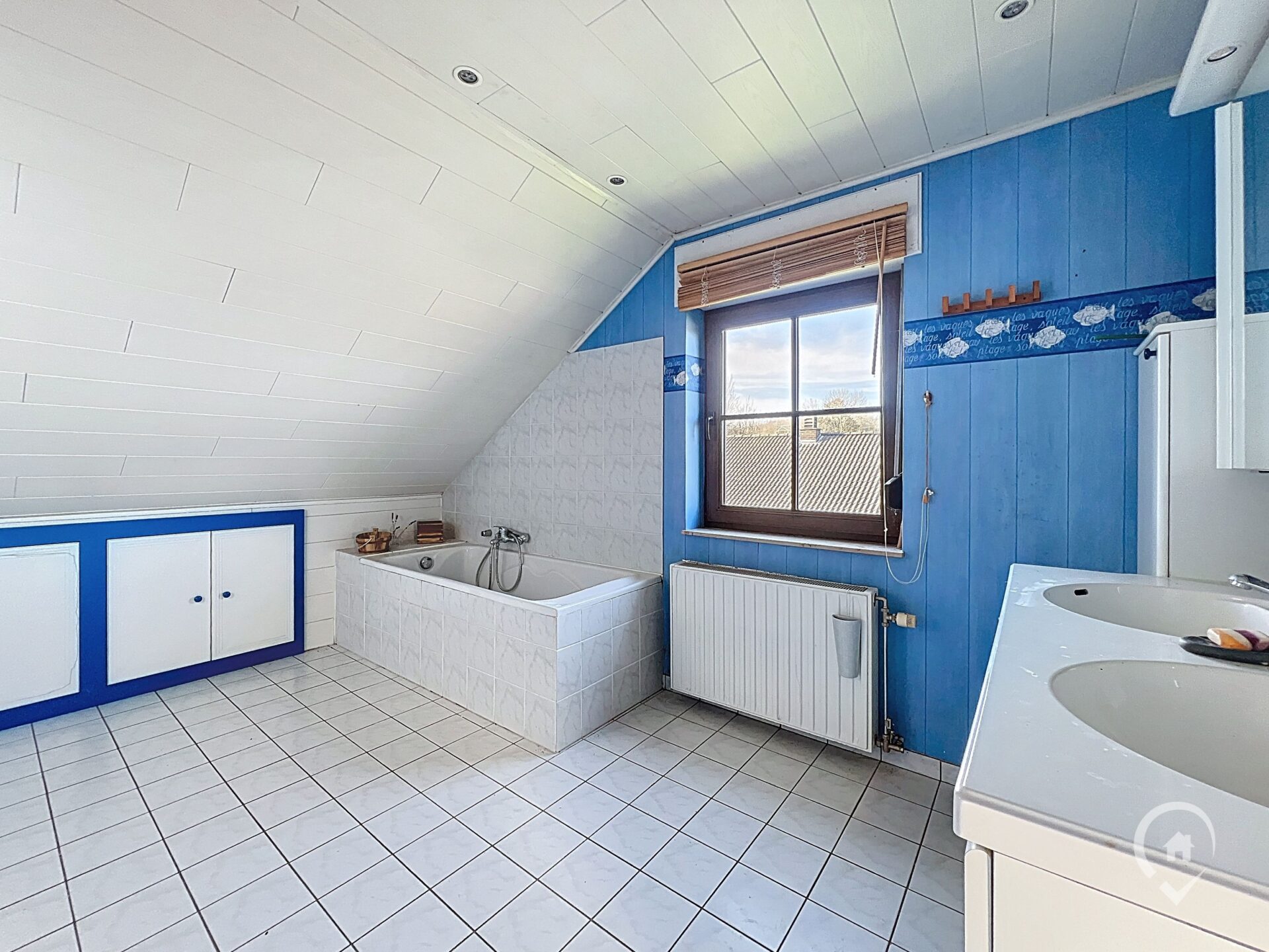 Remarques: citerne d’eau de pluie de 3.000 litres avec groupe hydrophore – chauffage central mazout (citerne de 2.400 litres) + poêle à bois – châssis PVC double vitrage – système d’alarme – abri de jardin – robot tondeuse.