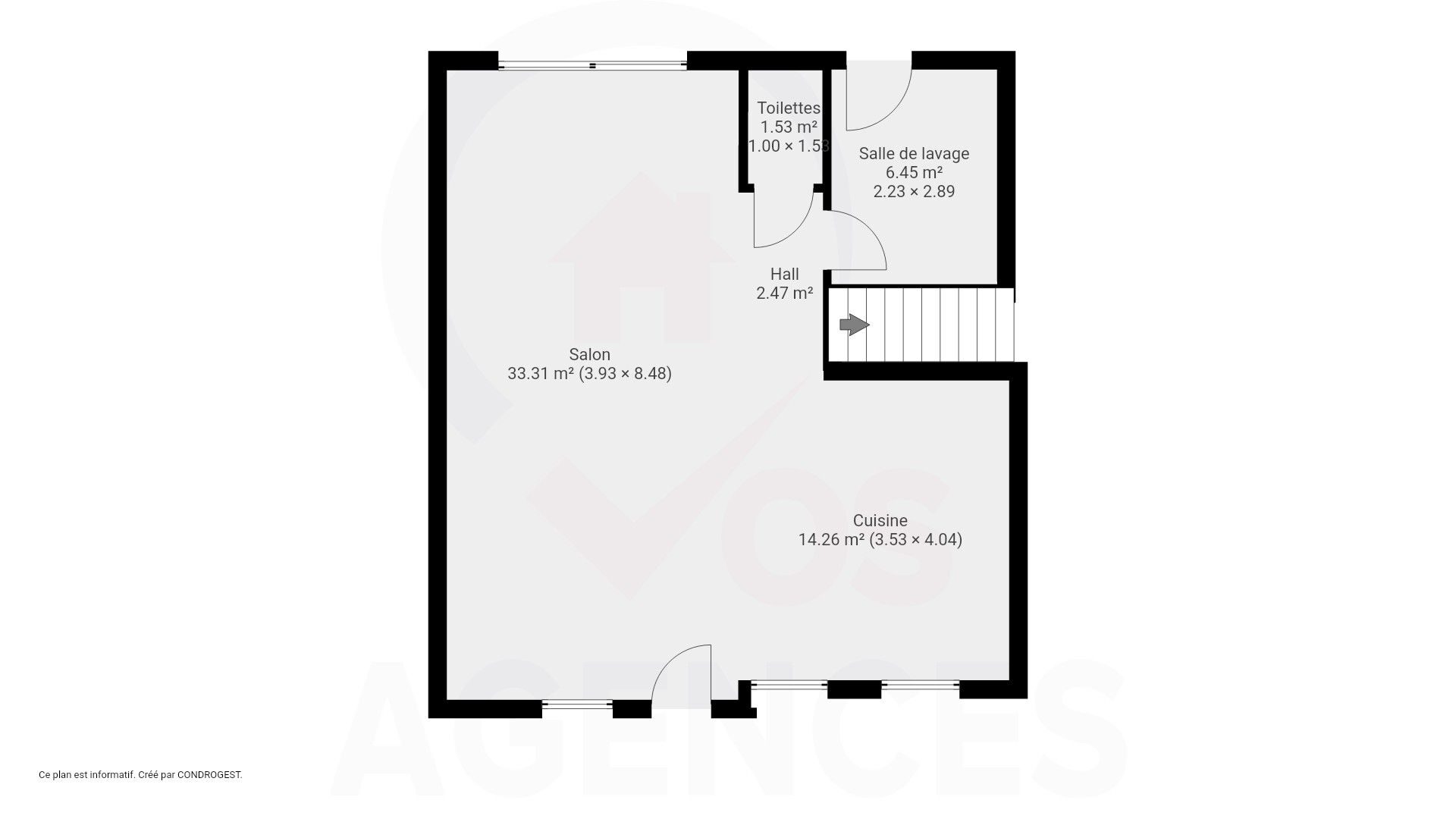 – Rez-de-chaussée : spacieux living en L avec espace cuisine, WC indépendant et buanderie ;