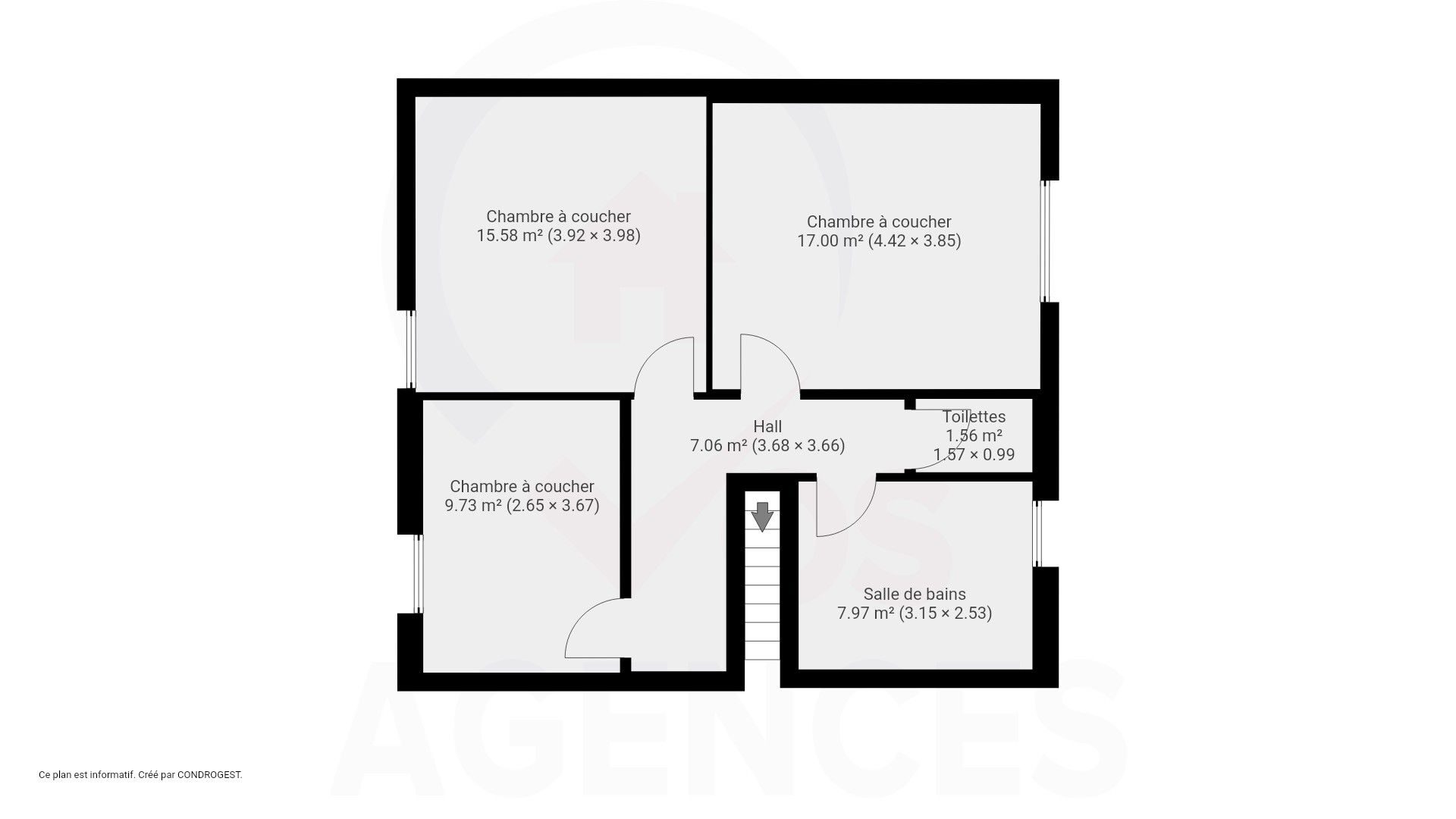 – 1er étage : hall de nuit, 3 chambres et salle de bain ;