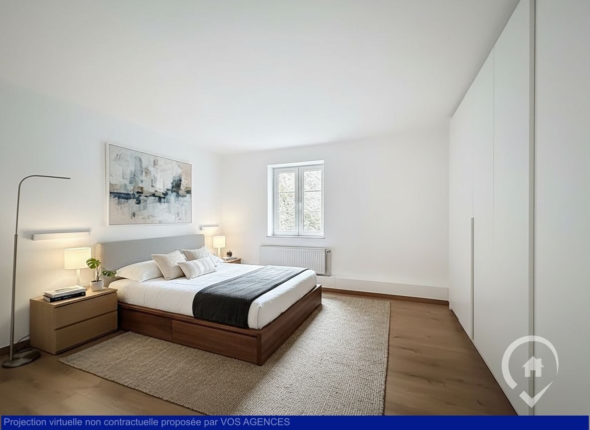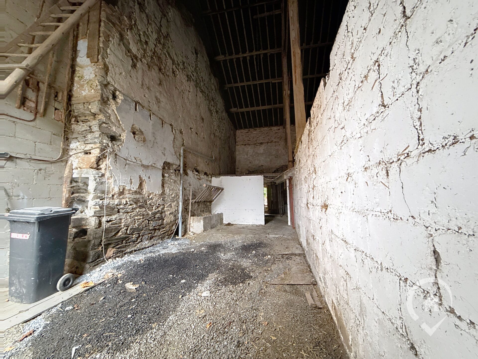 – Rez : hall, living, cuisine équipée, bureau ou chambre, salle de douche, wc séparé, buanderie, grange aménageable 90M2 au sol (garage, atelier…)