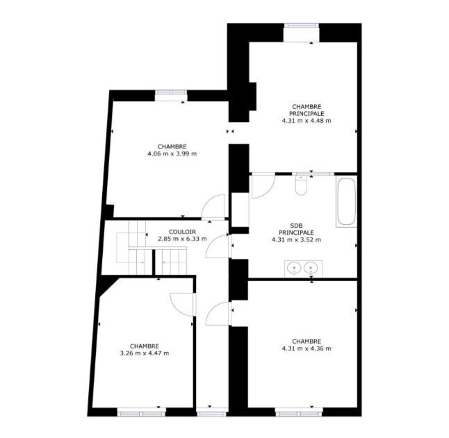 – 1er étage : 3 chambres, dressing (ou chambre), salle de bain