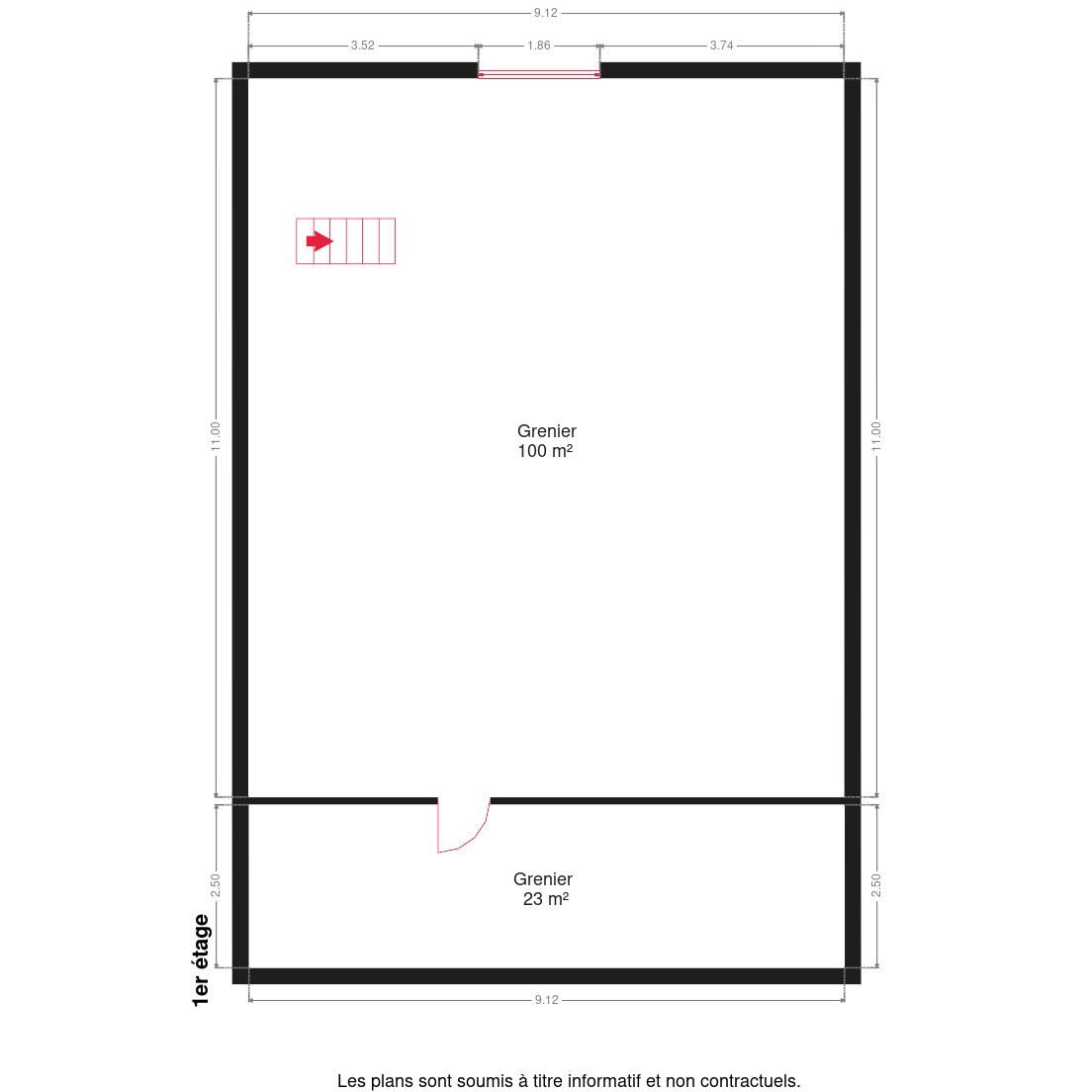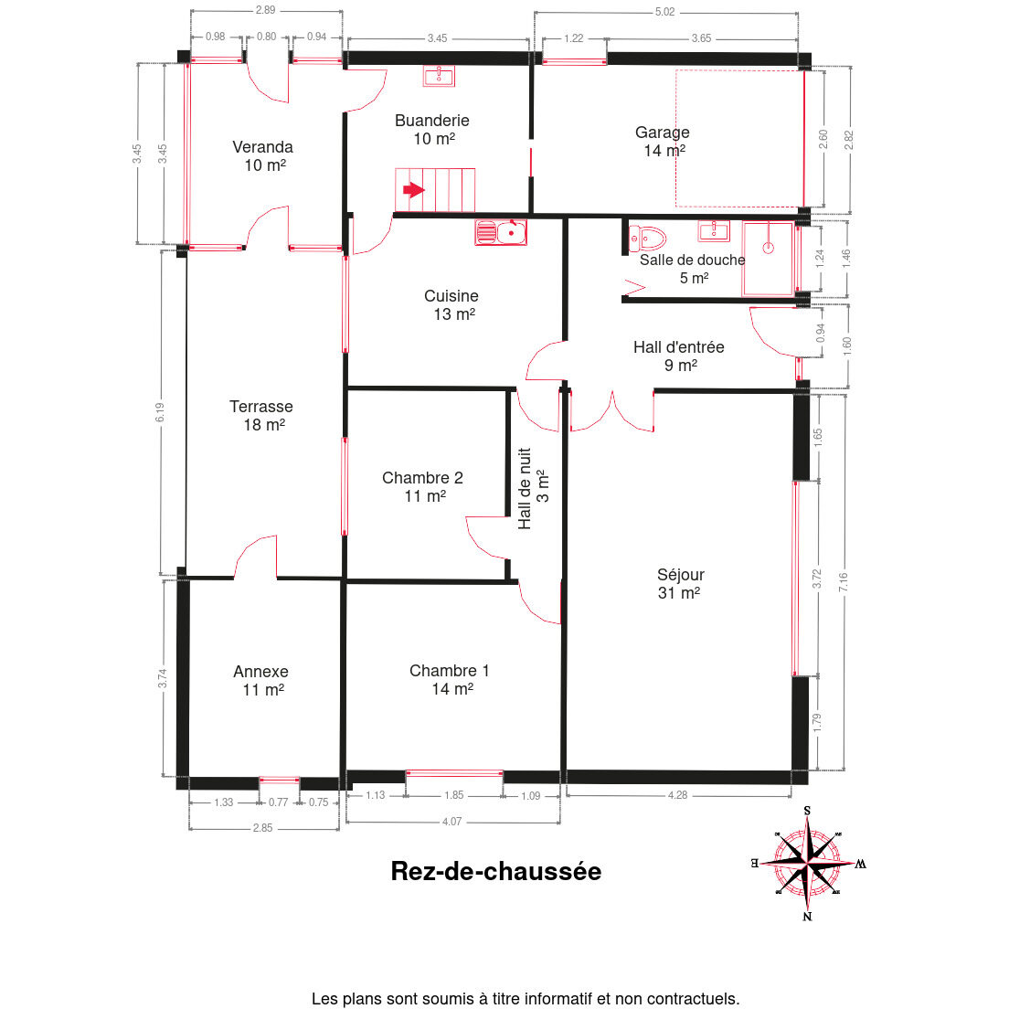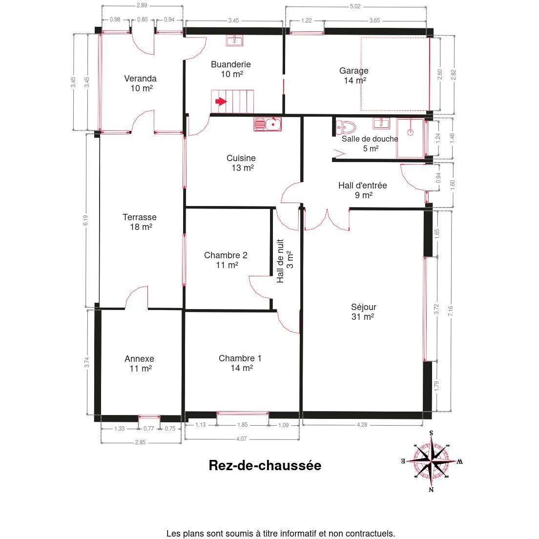 Composition : hall d’entrée, séjour, cuisine, buanderie, 2 chambres, salle de douche, terrasse d’hiver, grenier de 123m² et annexe de 11m².