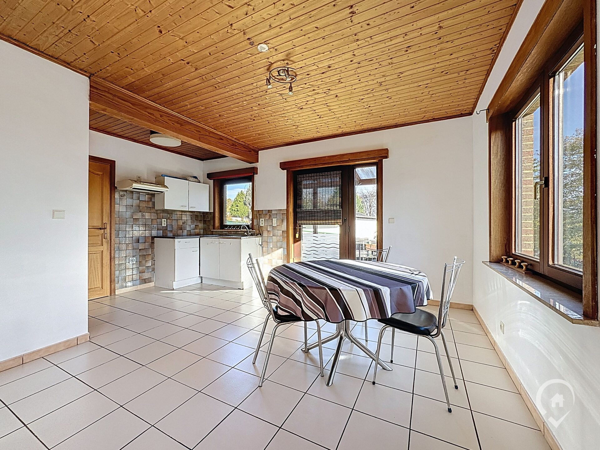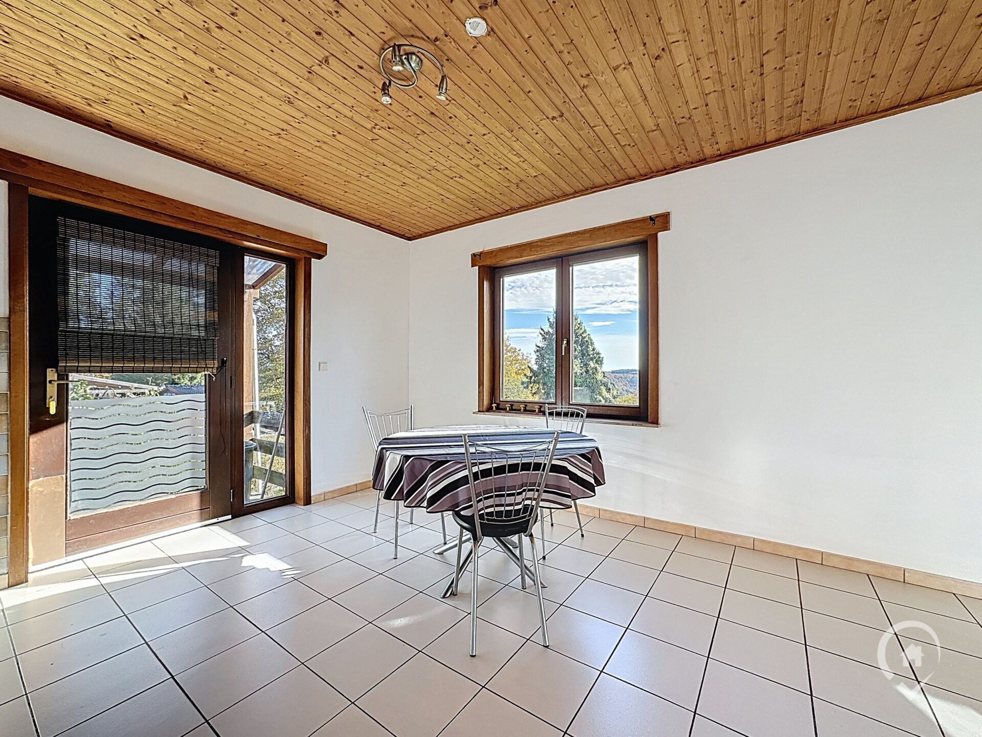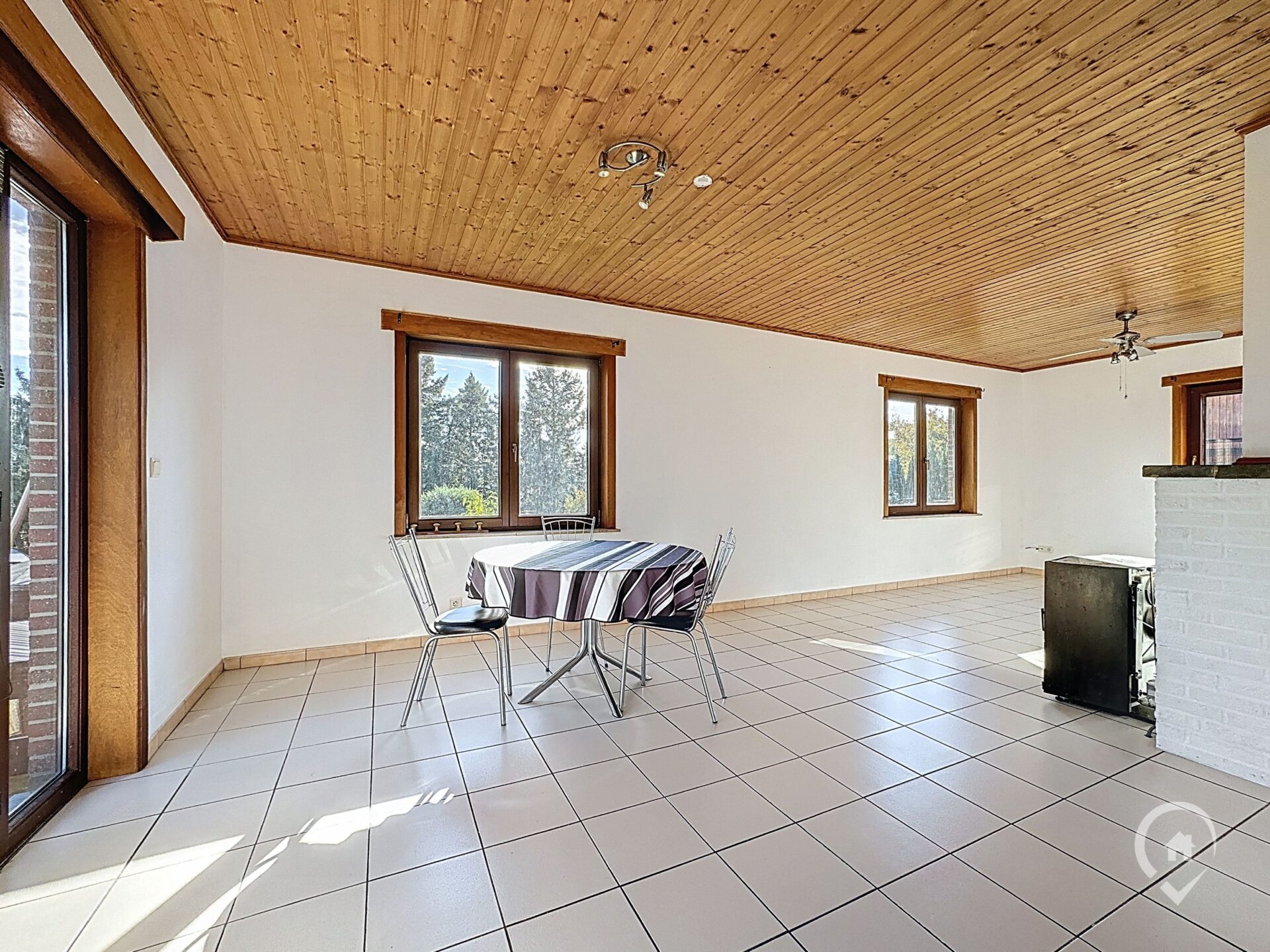 Remarques : châssis en bois avec double vitrage et volets mécaniques – toiture isolée – chauffage via un foyer au mazout – domiciliation autorisée