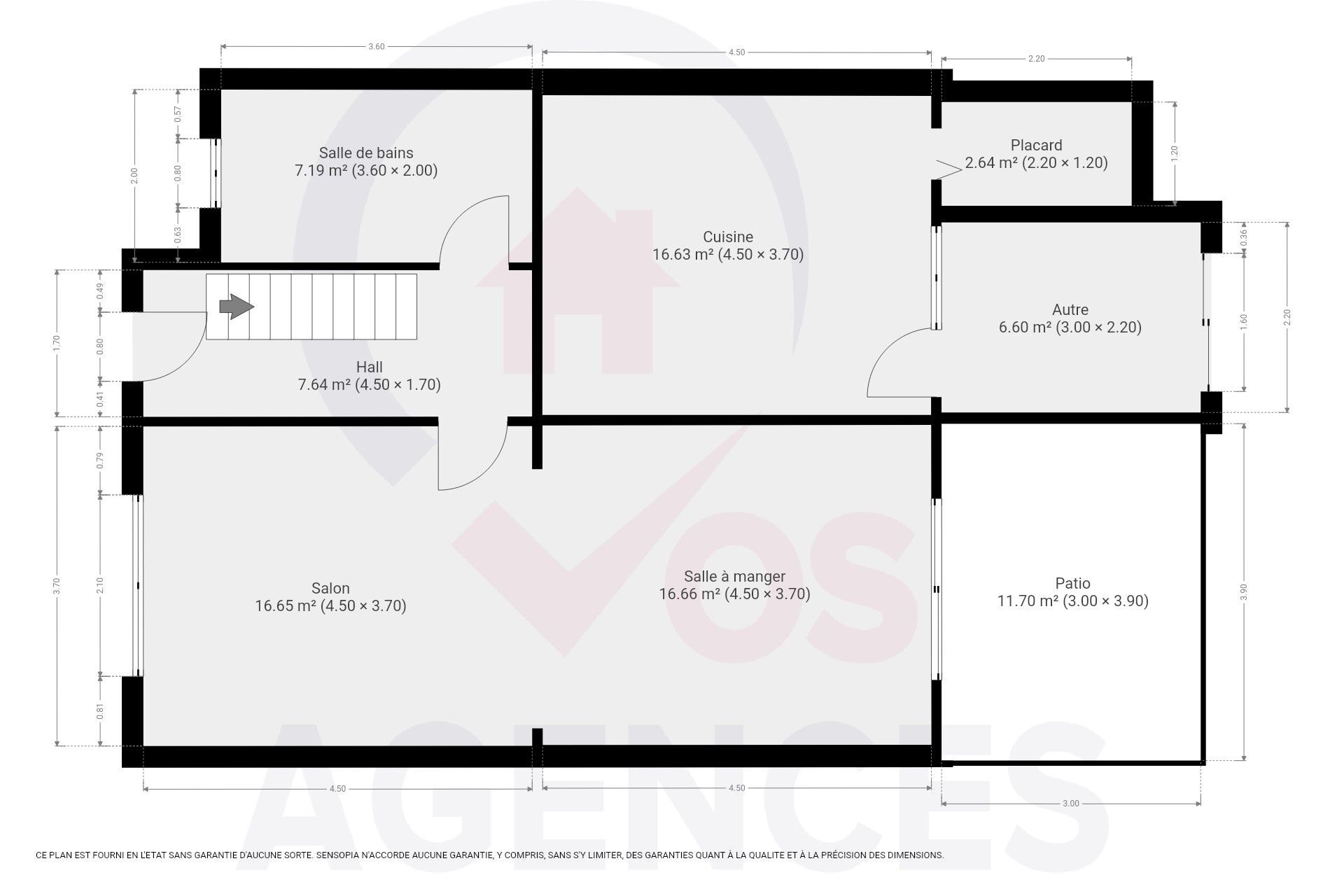 – Rez : hall, salle de bain/buanderie, living, cuisine ouverte, cellier, patio, véranda