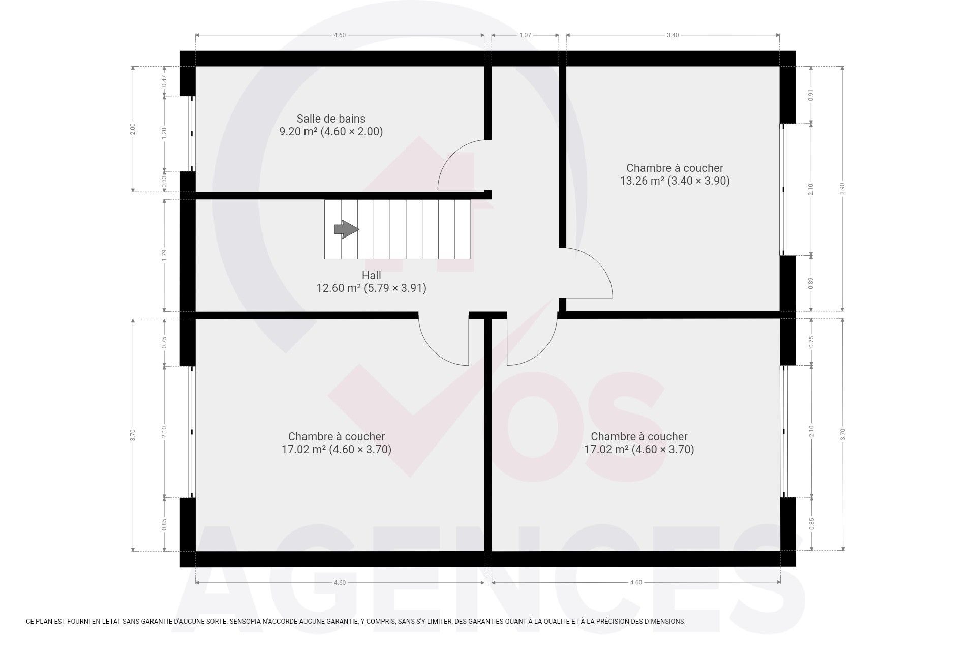 – 1er étage : 3 chambres et salle de bain
