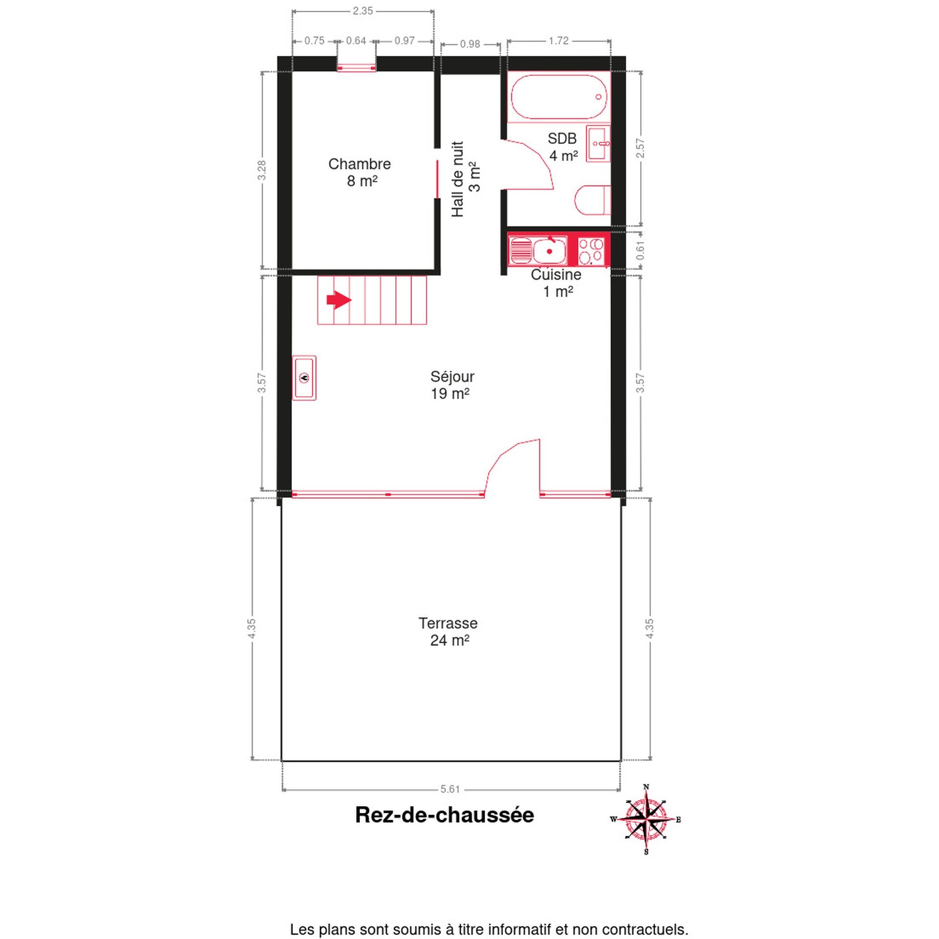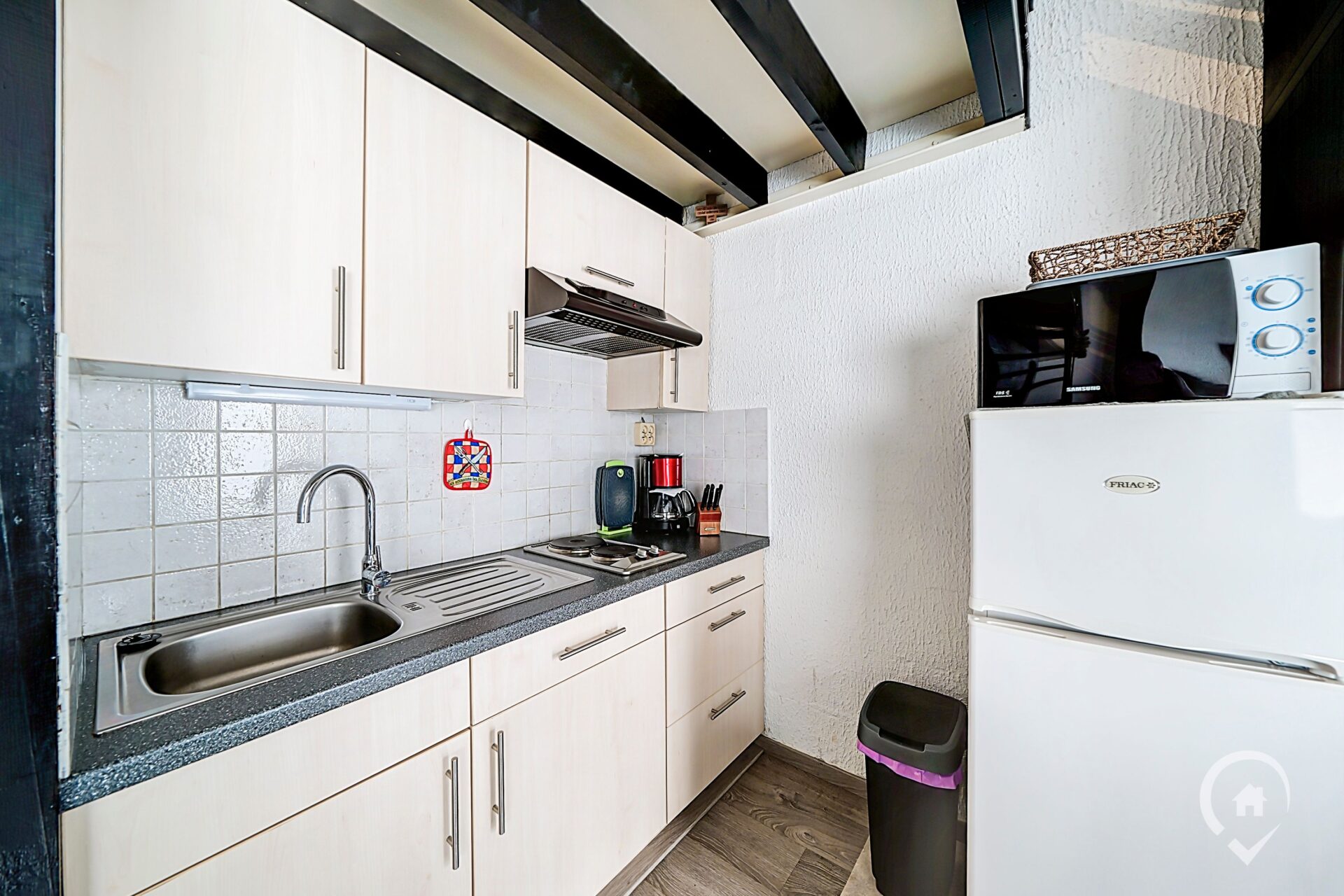 Composition : pièce de vie avec cuisine équipée, salle de bain et 2 chambres.