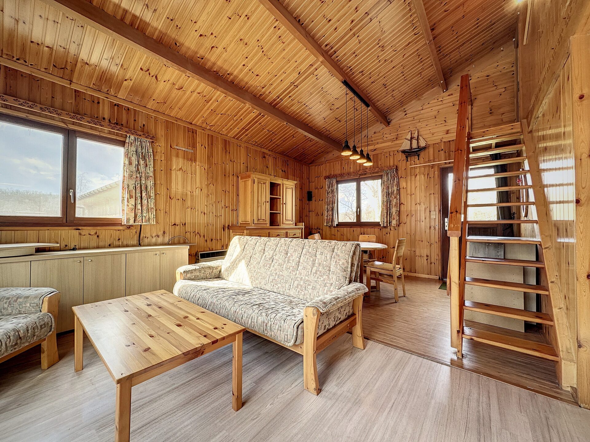 Remarques : permis d’urbanisme octroyé pour la location saisonnière jusqu’à 6 personnes, présence d’un mini-golf – terrains de pétanque, tennis et basket – plaine de jeux – restaurant et barbecue libre d’accès pour les résidents – le terrain de 73ca autour du chalet est privatif et vous appartient – châssis double vitrage en bois – électricité conforme jusqu’en 2050 – vendu meublé en partie.