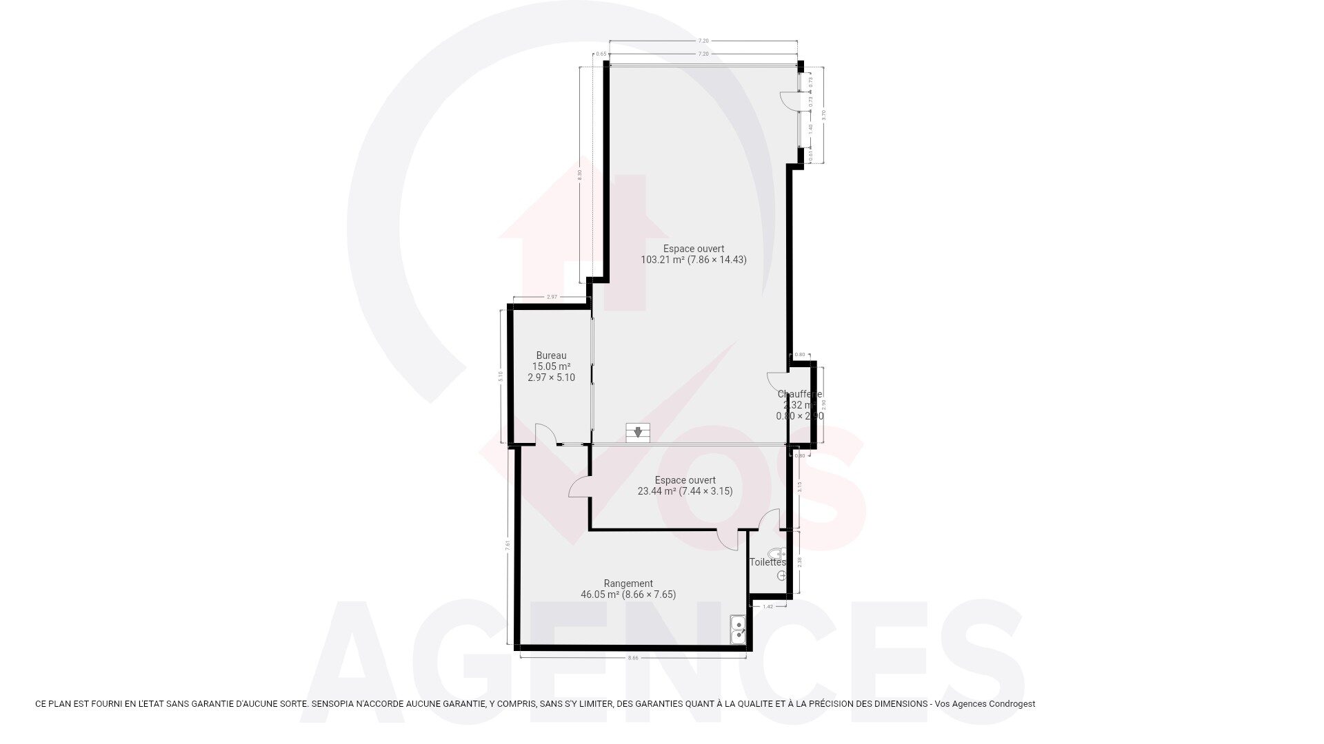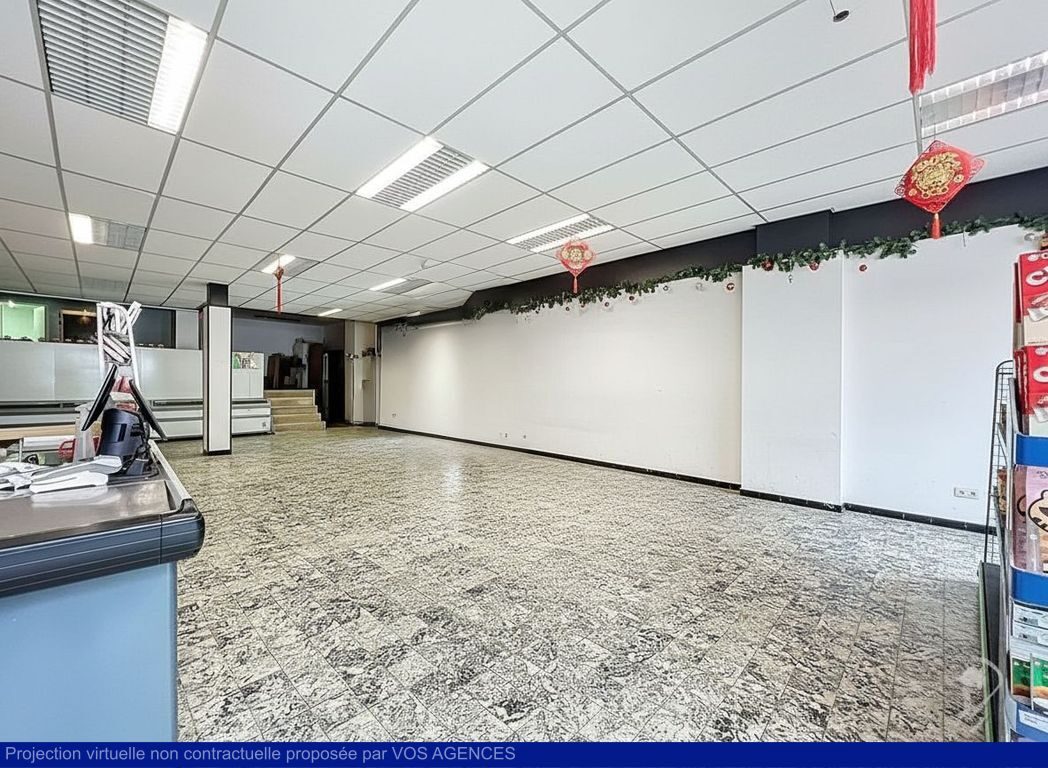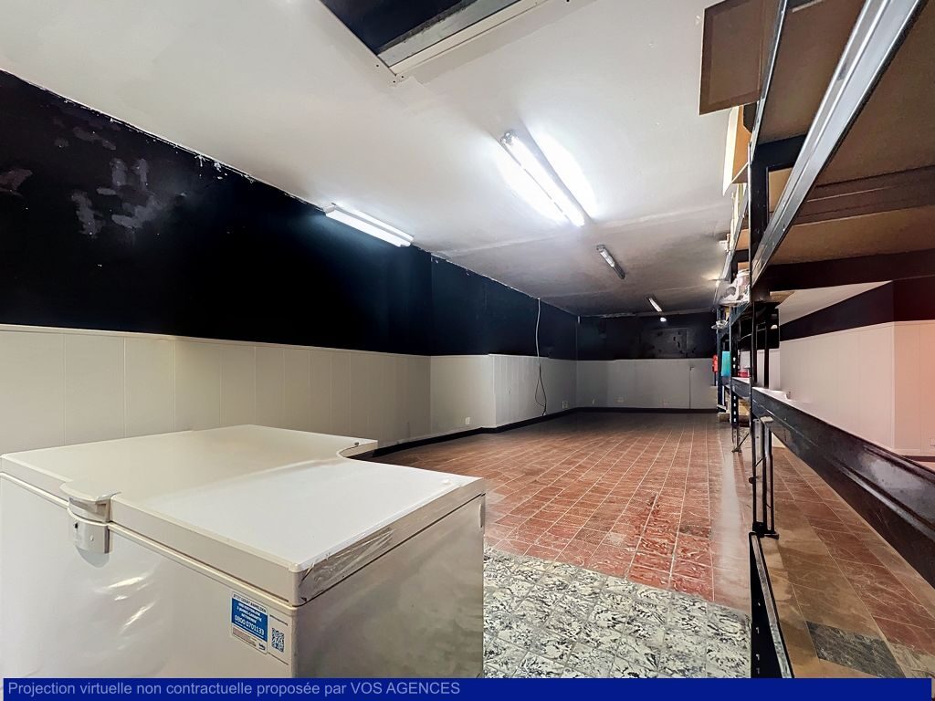 Composition : grand espace ouvert (magasin sur deux demi-niveaux), une grand réserve, un bureau et un wc. Garage.