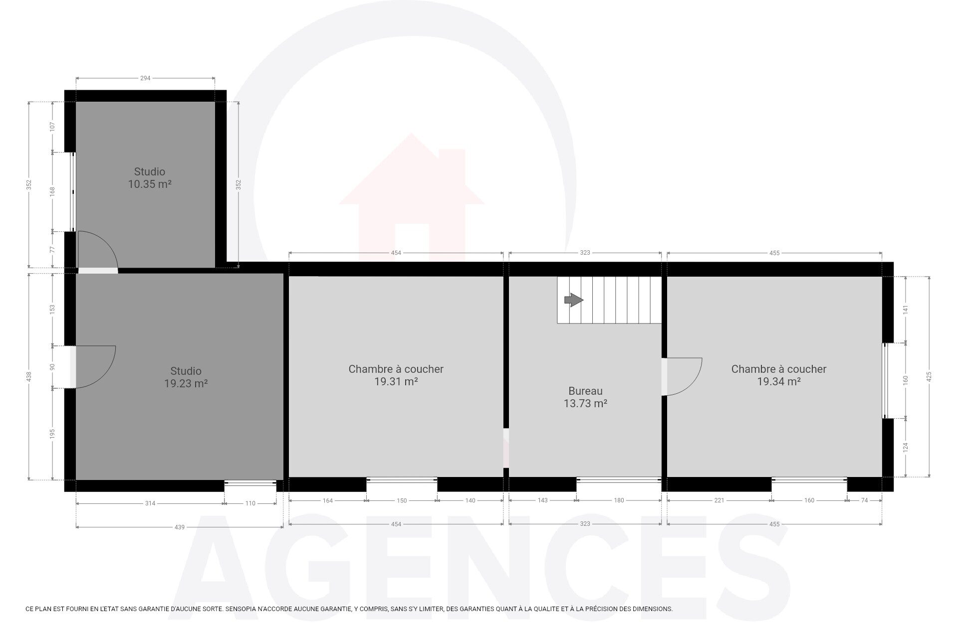– 1er étage : bureau, 2 chambres, studio de 30m² (deux pièces à rénover) avec entrée indépendante ;