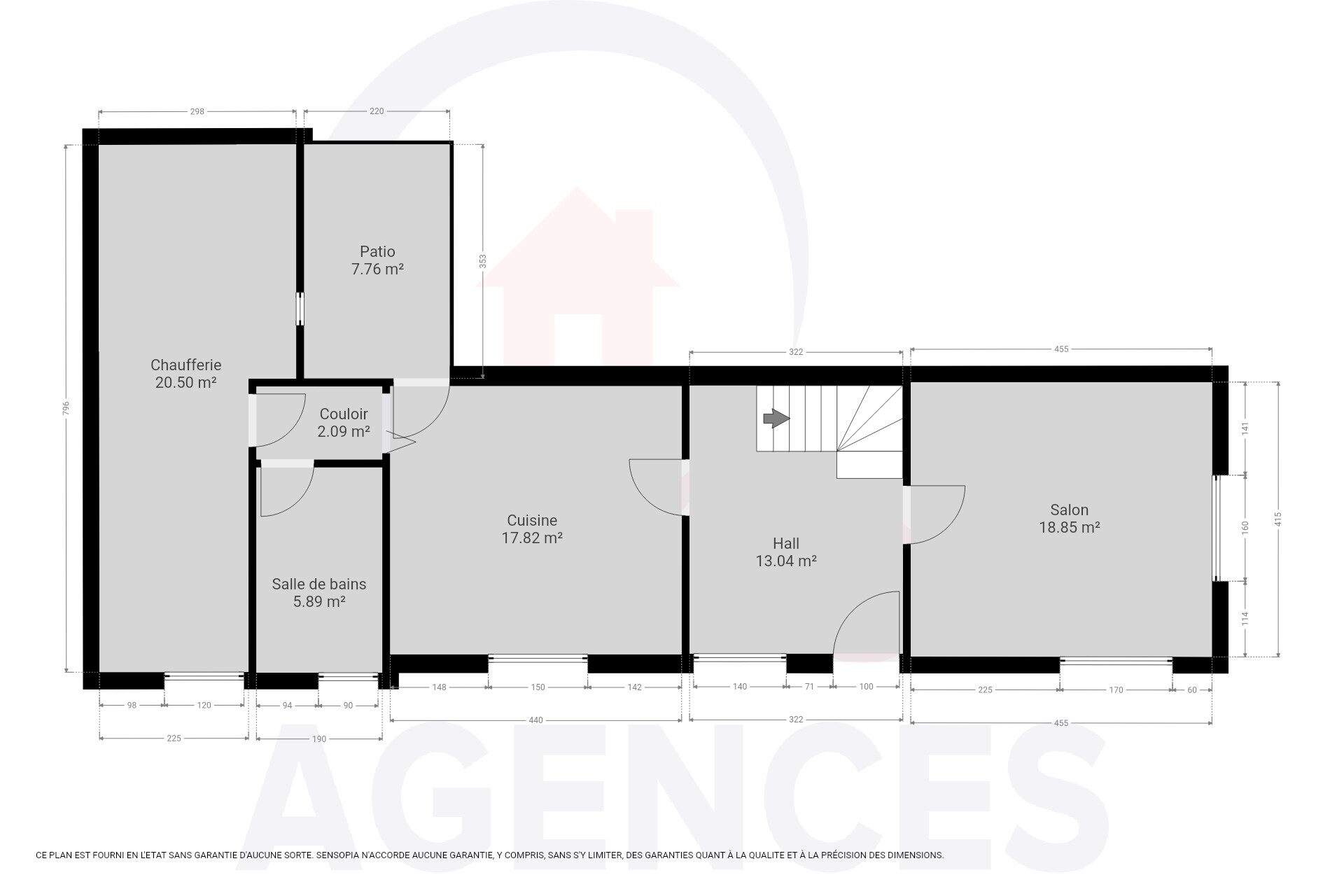 – Rez : Hall, salon, cuisine, salle de bains, buanderie/chaufferie, cour ;