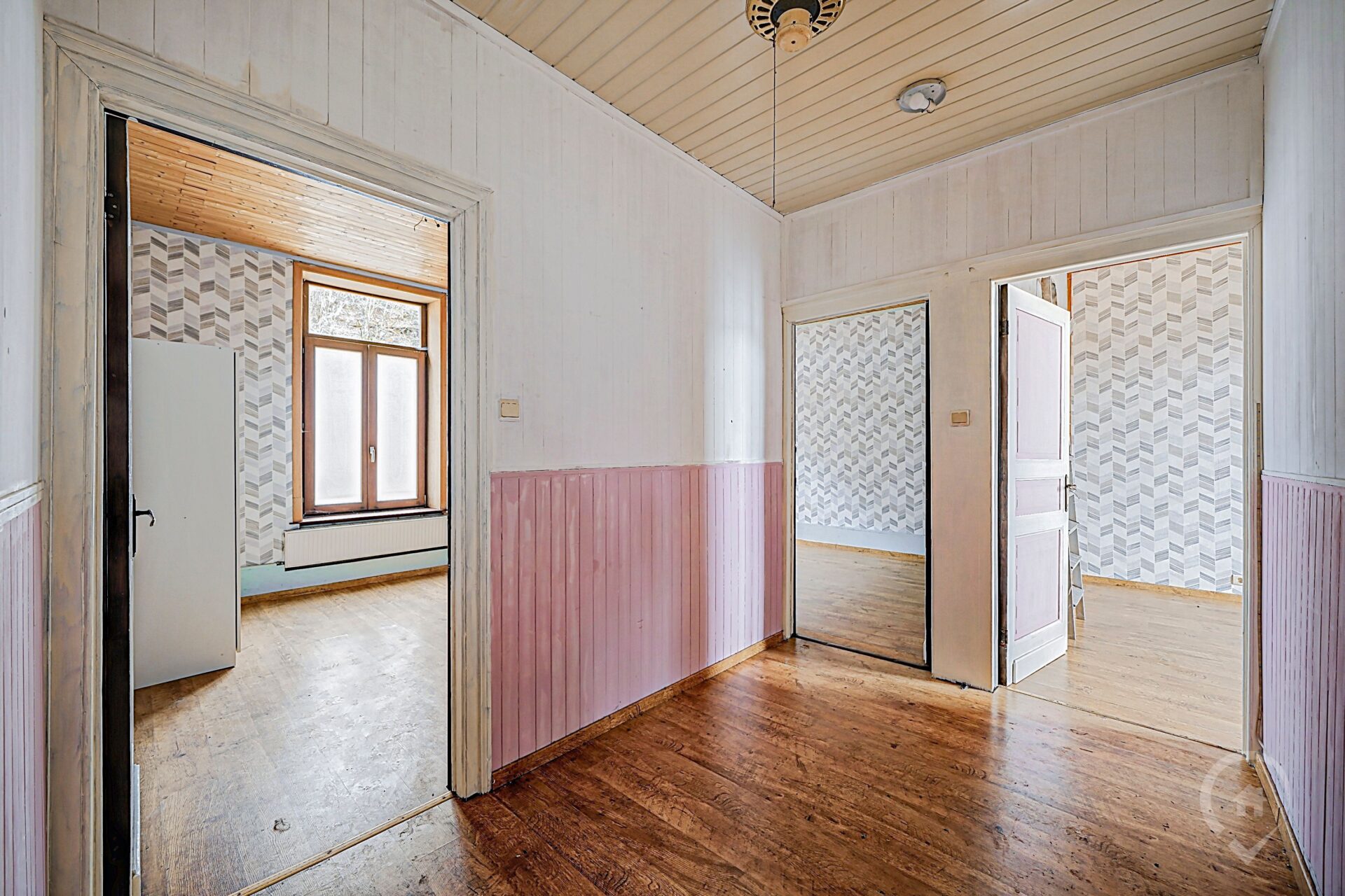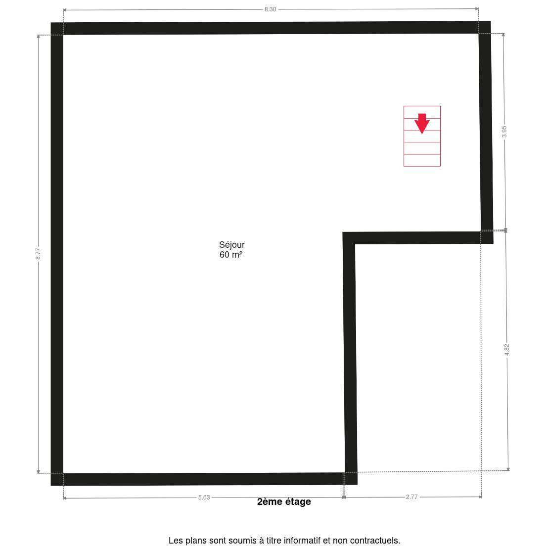 – 2e étage : grenier isolé de 60m² à rénover pour en faire la pièce à vivre de l’appartement.