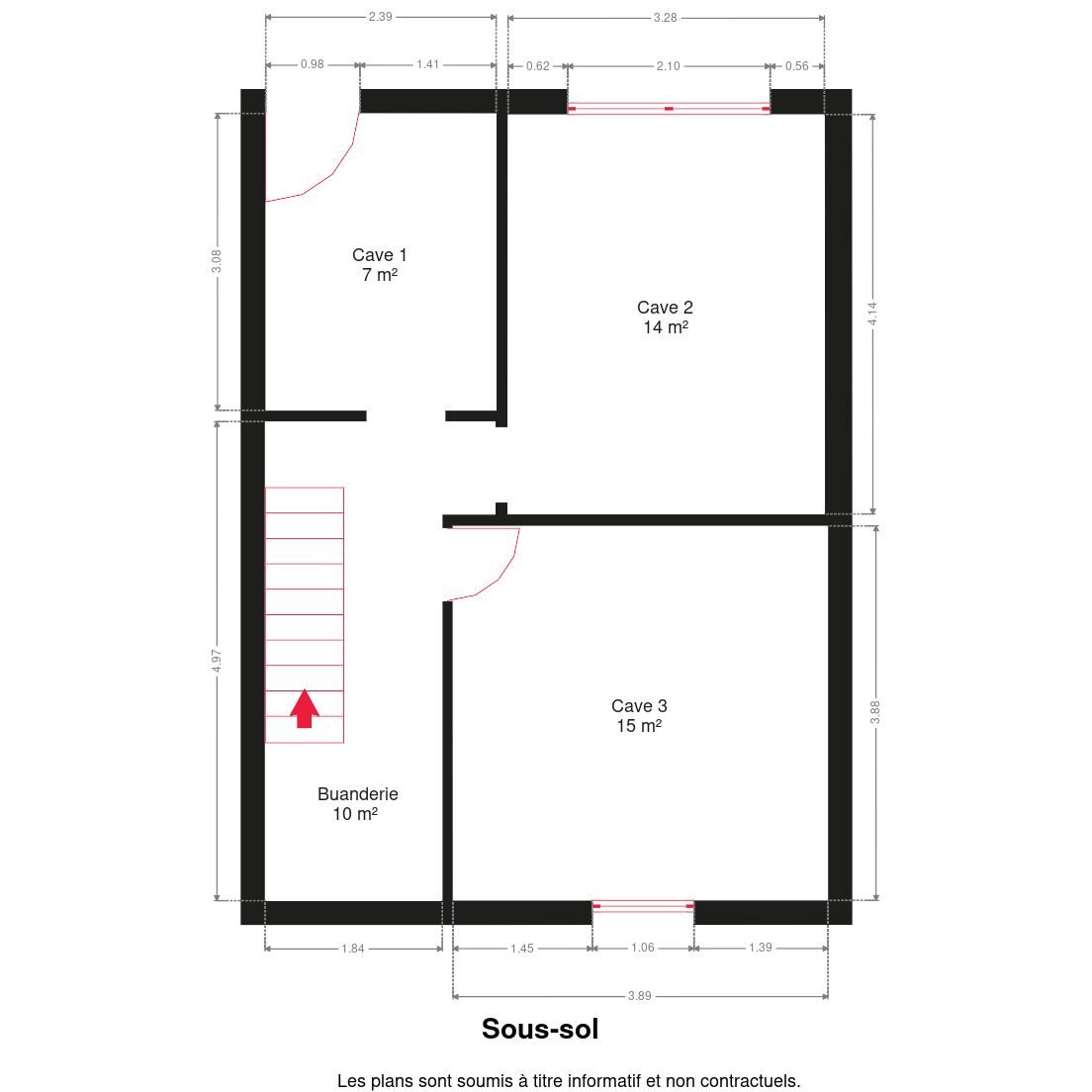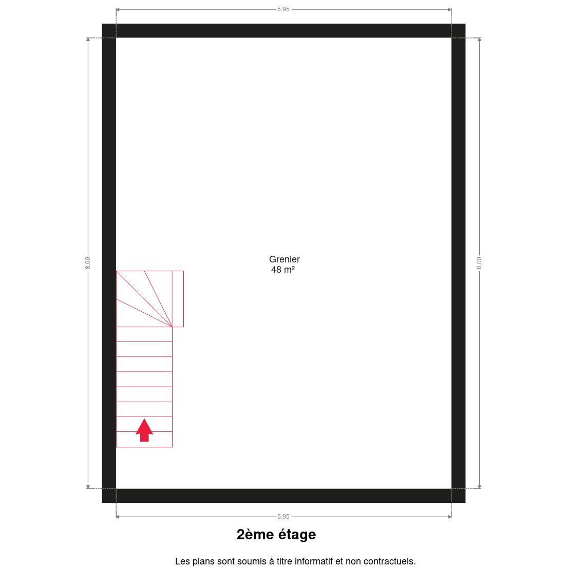 – 2e étage : grenier de 48 m² isolé et aménageable ;