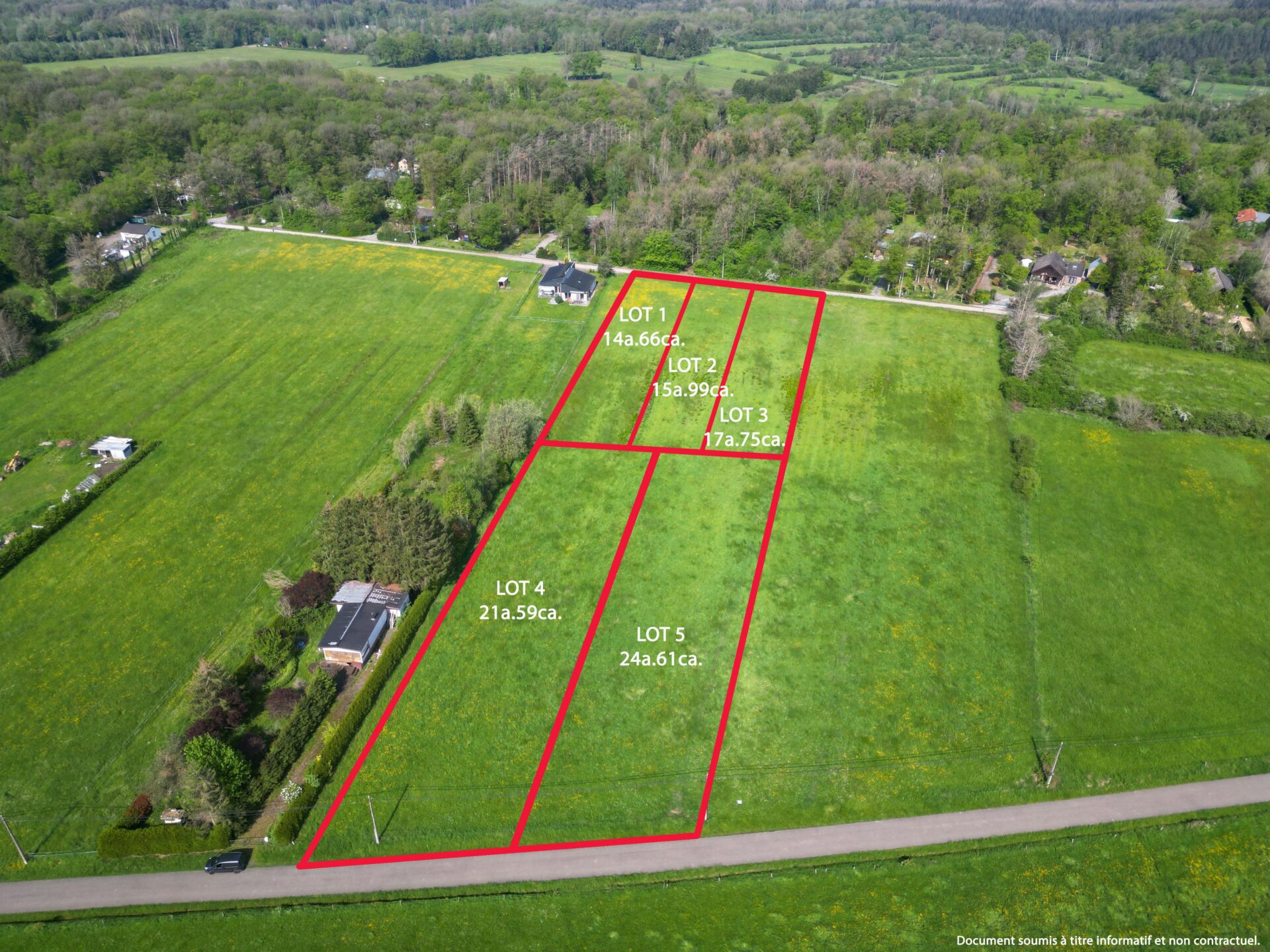 A savoir: Lot 5, terrain plat, système d’égouttage autonome, eau et électricité à proximité. frais de bornage et de participation à l’acte de base sur demande.