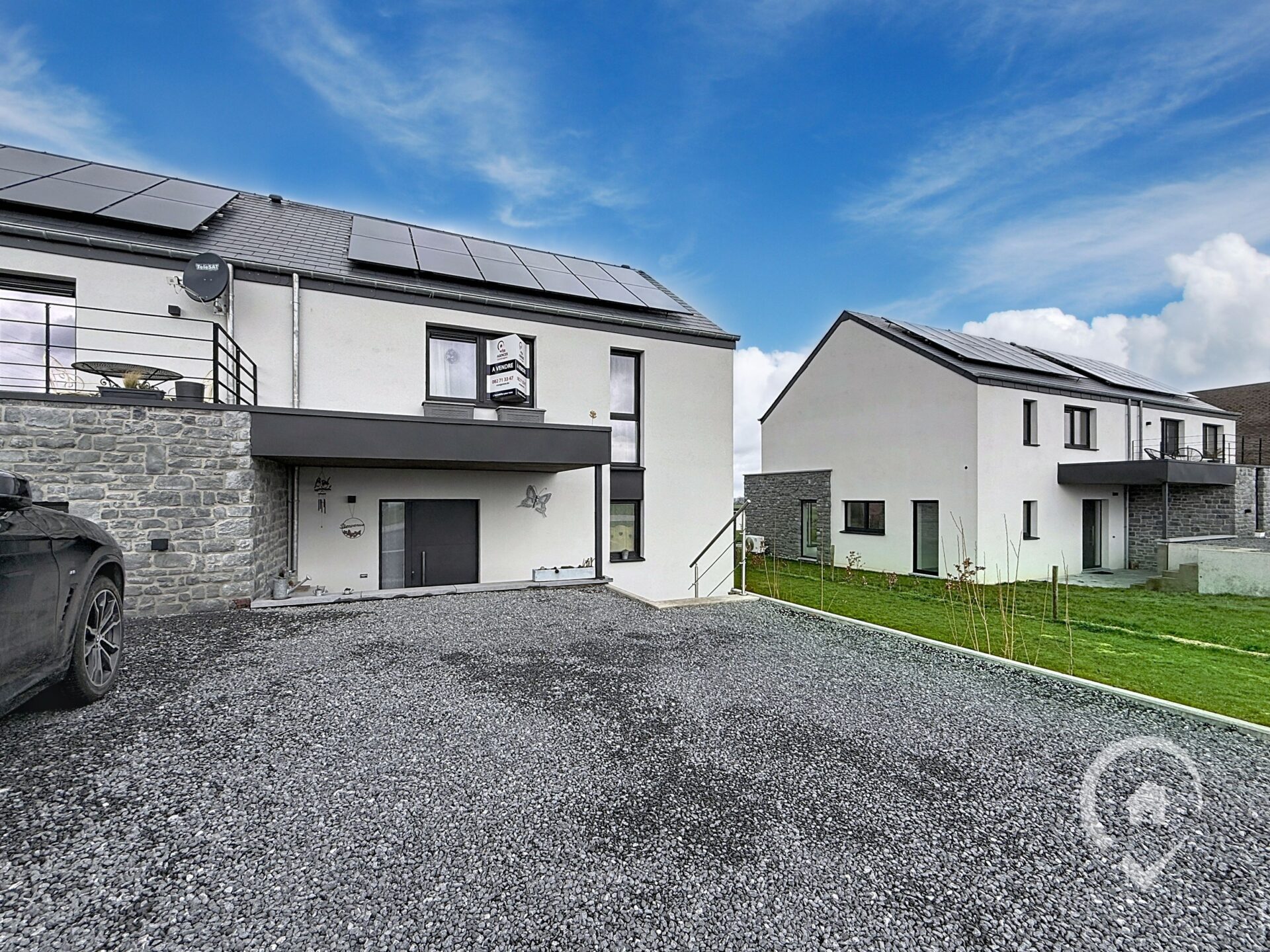 Côté technique, le bien bénéficie d’un excellent PEB A+, grâce notamment à son chauffage par pompe à chaleur et à la présence de panneaux photovoltaïques, garantissant une consommation énergétique réduite.