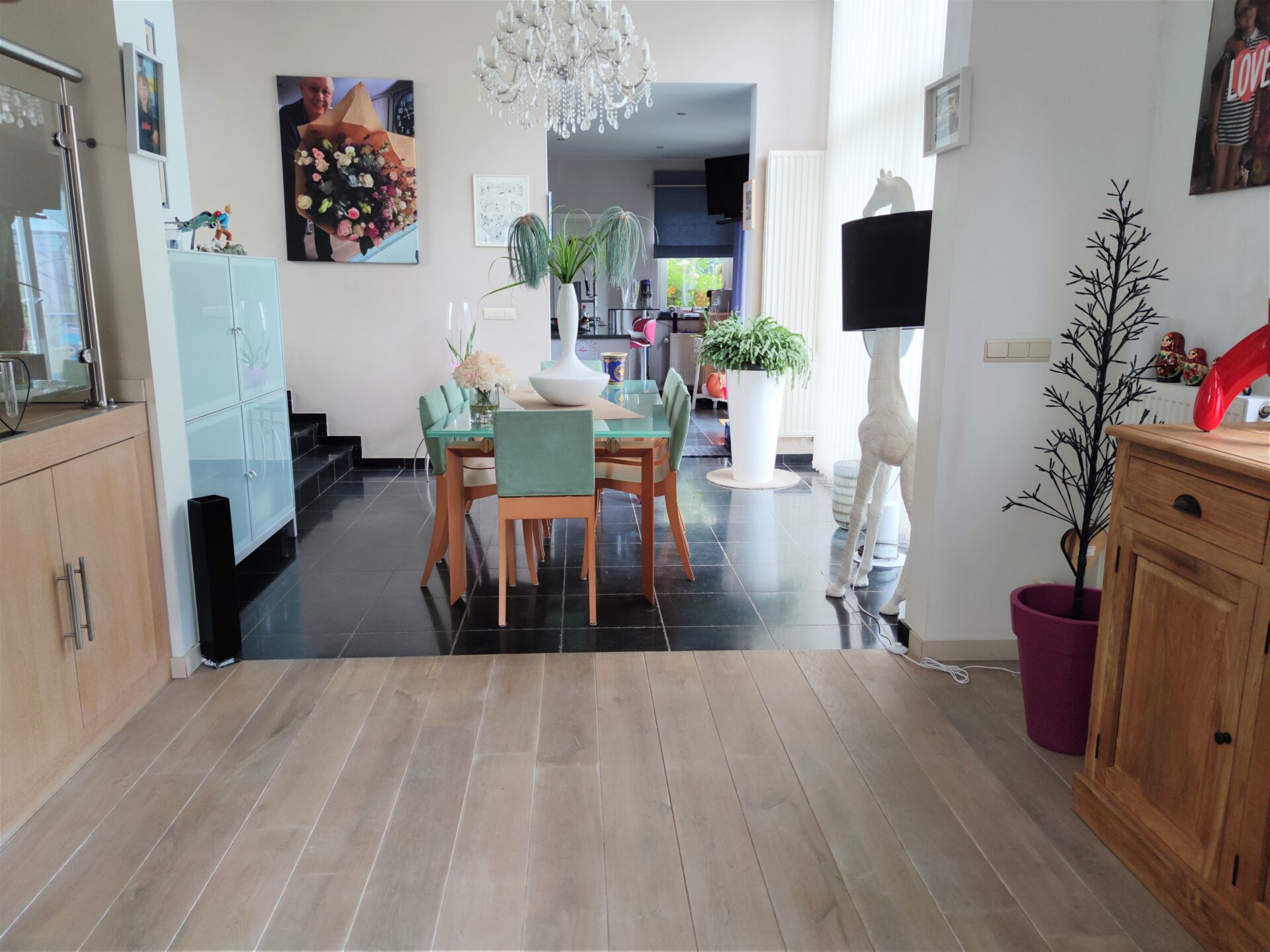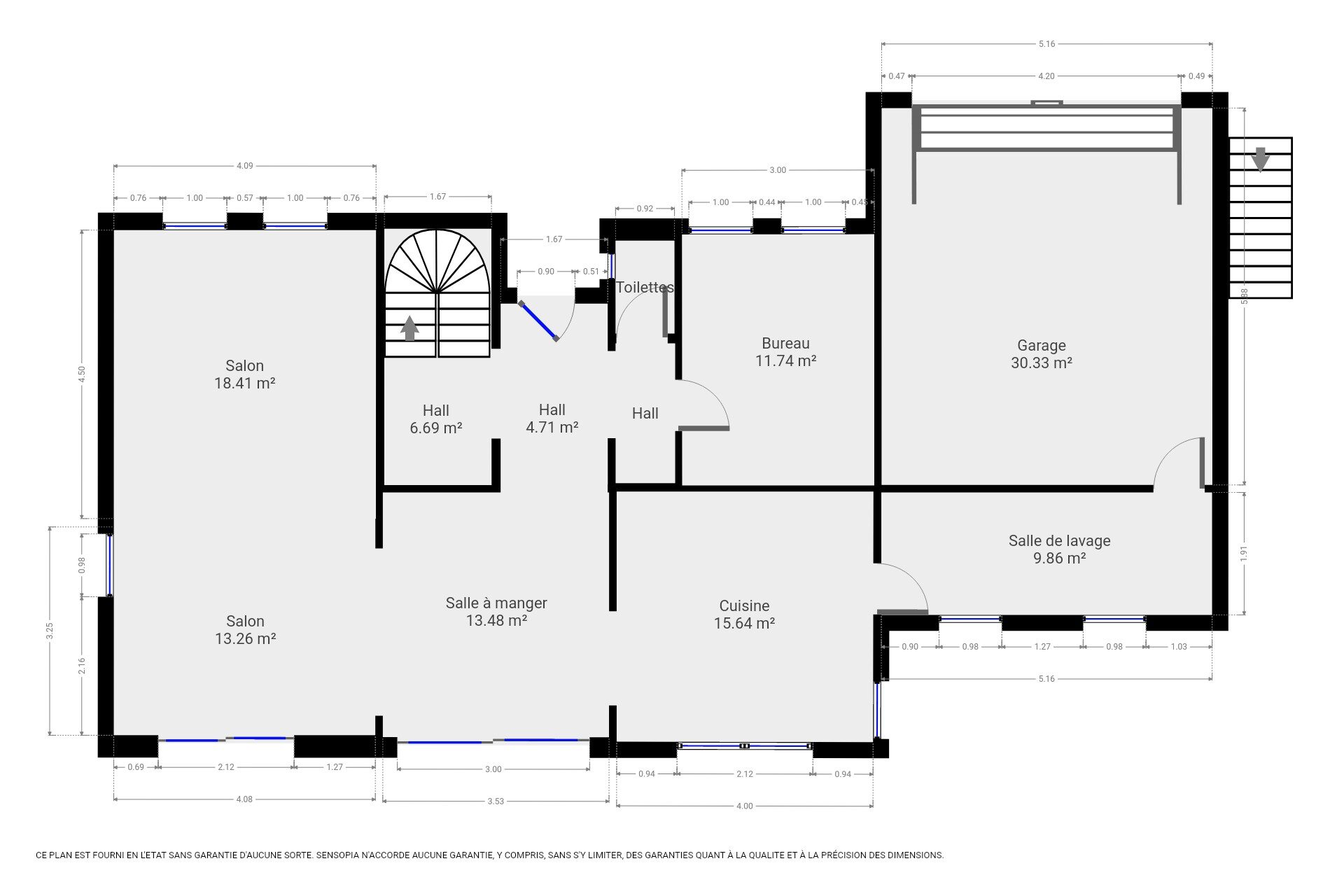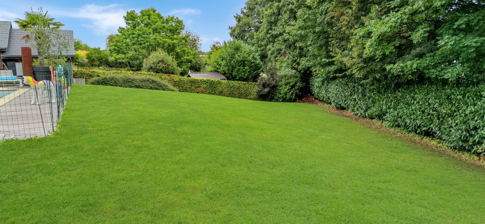 Au rez-de-chaussée : hall d’entrée, salle à manger, séjour, cuisine équipée, buanderie, wc séparé, bureau, garage, terrasse, piscine, jardin.