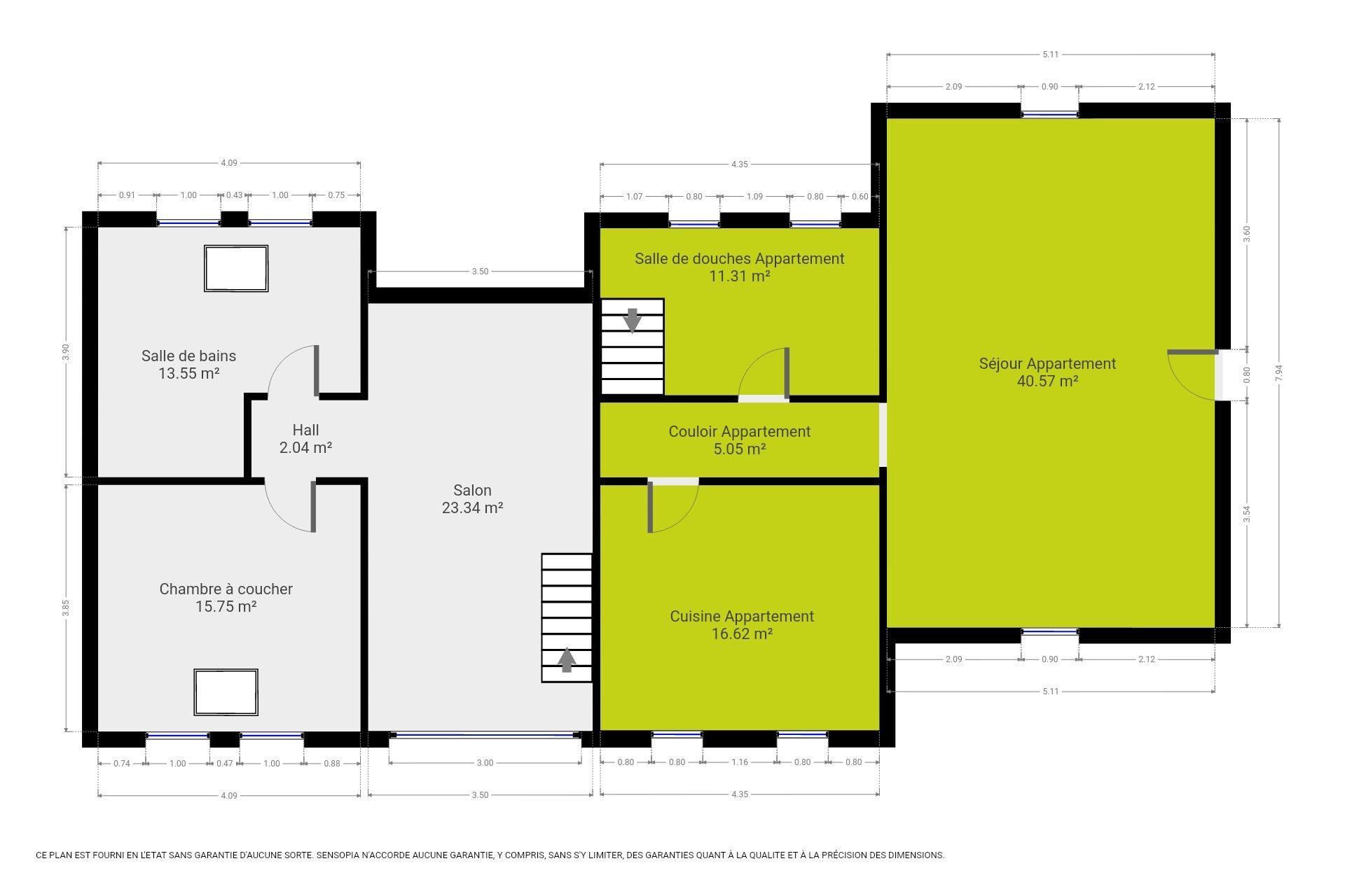Entrée séparée : Appartement comprenant séjour, cuisine équipée, chambre, salle de douches.