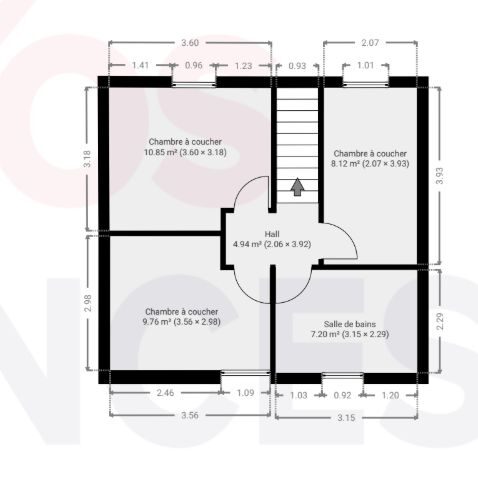 – 1er étage : hall de nuit, 3 chambres, salle de douche ;
