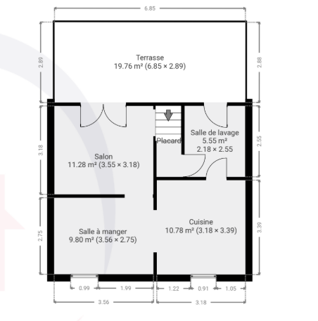 – Rez-de-chaussée : salle à manger, espace cuisine ouvert, salon, buanderie, espace de rangement ;