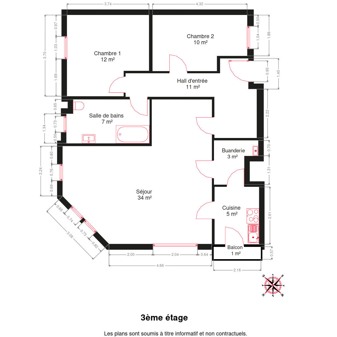 3 m²
