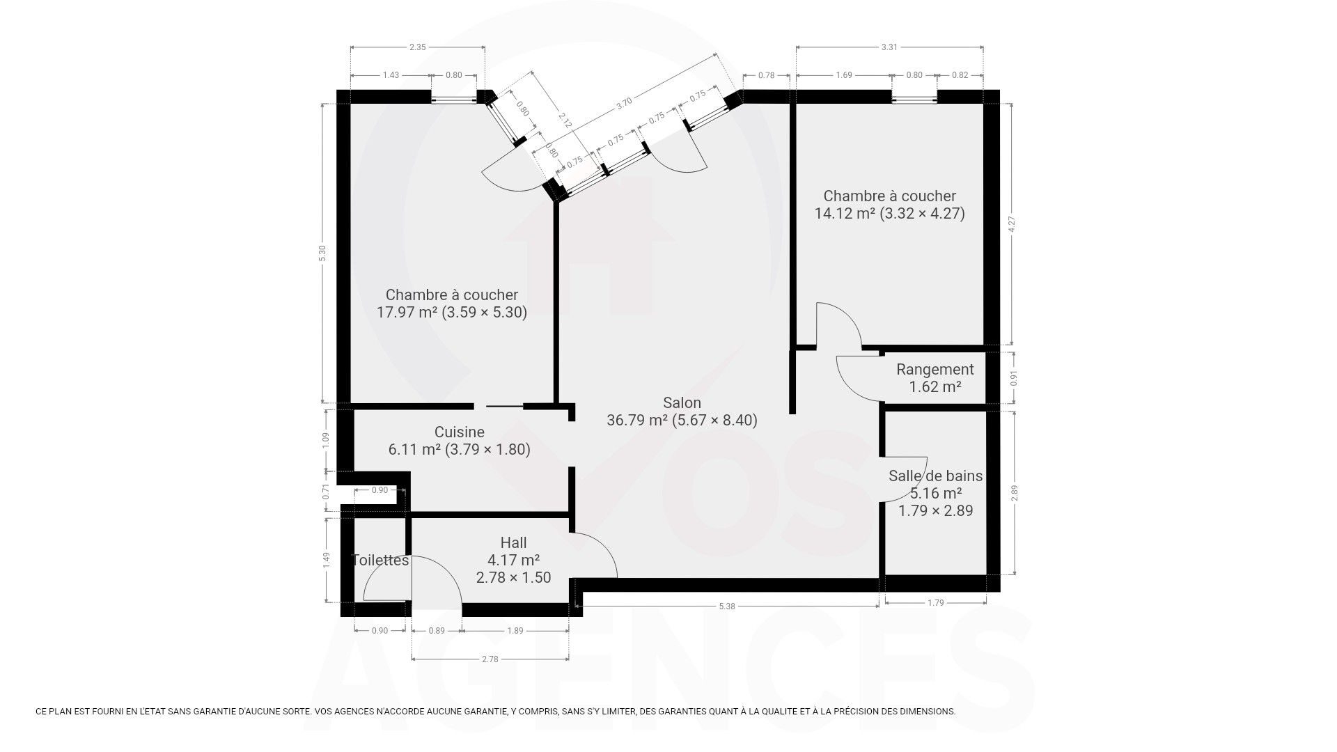 Composition : hall d’entrée, WC séparé, séjour avec accès terrasse, cuisine équipée (four, lave-vaisselle, taque vitrocéramique, hotte, frigo et congélateur), une grande chambre avec accès terrasse, une seconde chambre, salle de douches avec évier et espace machines, vestiaire/rangement. En sous-sol : 2 caves privatives.