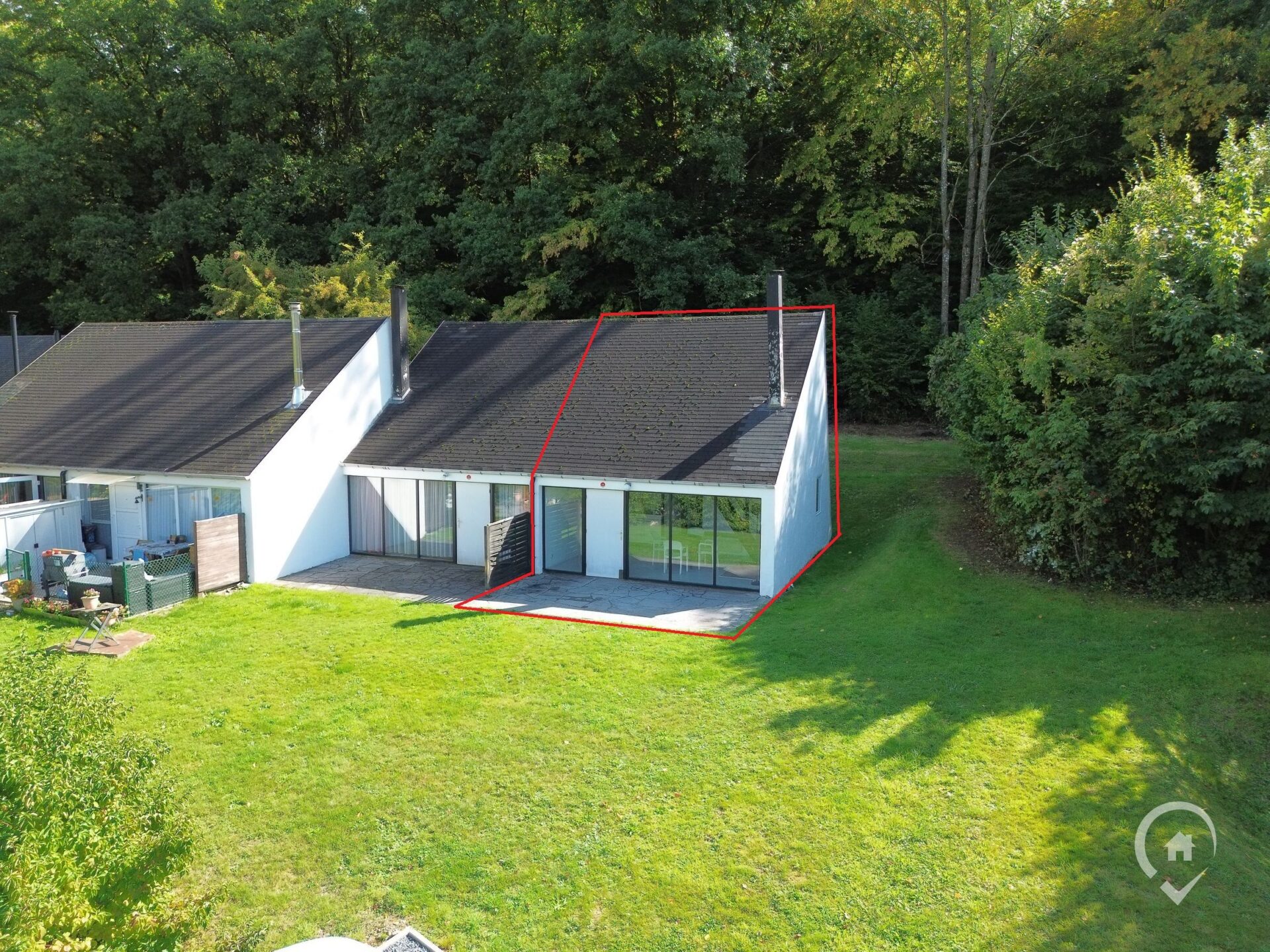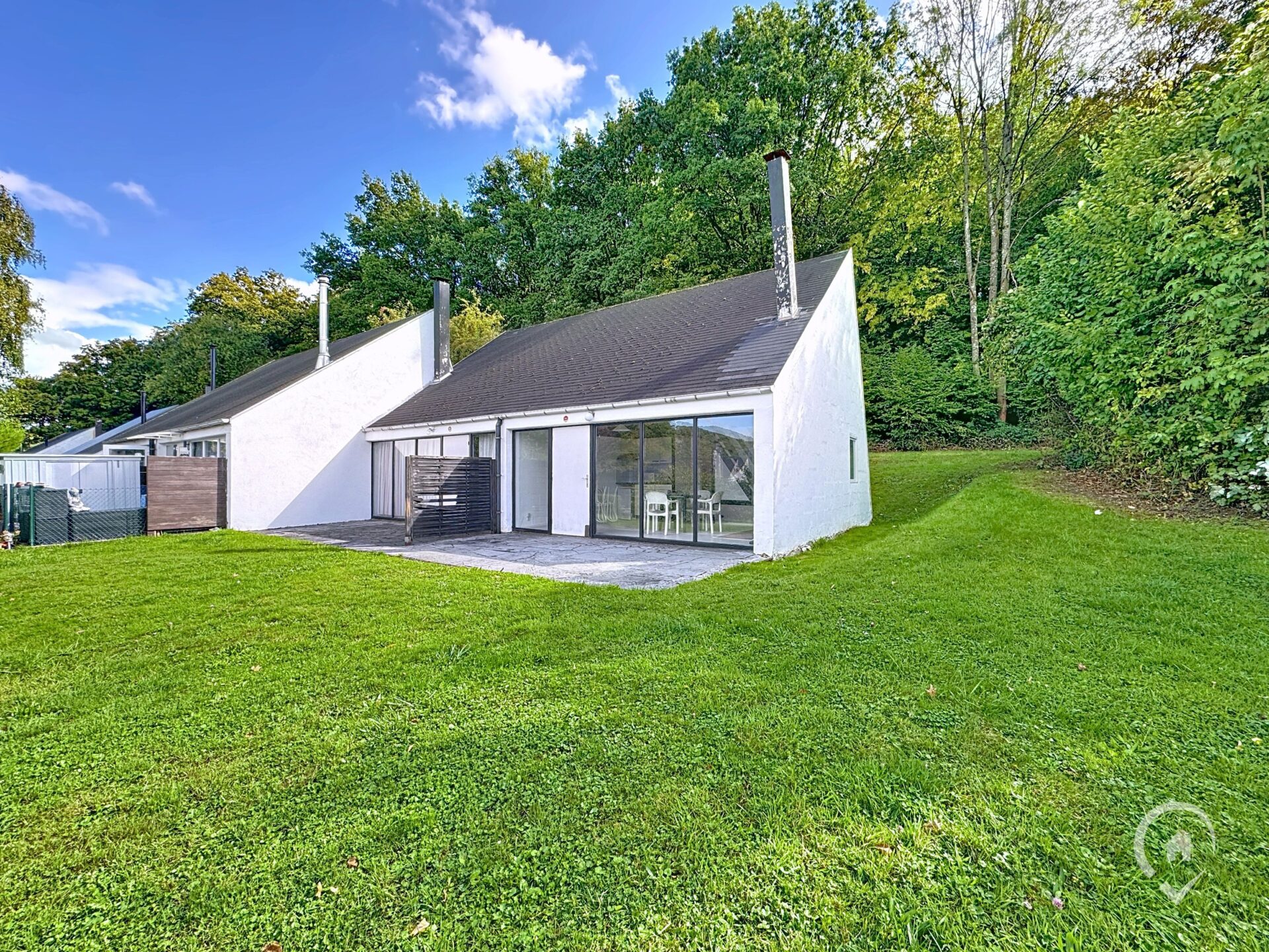 Vos Agences Condrogest Dinant biedt u deze charmante bungalow aan, gelegen op de hoogten van Hastière, in het domein Les Gaux.
