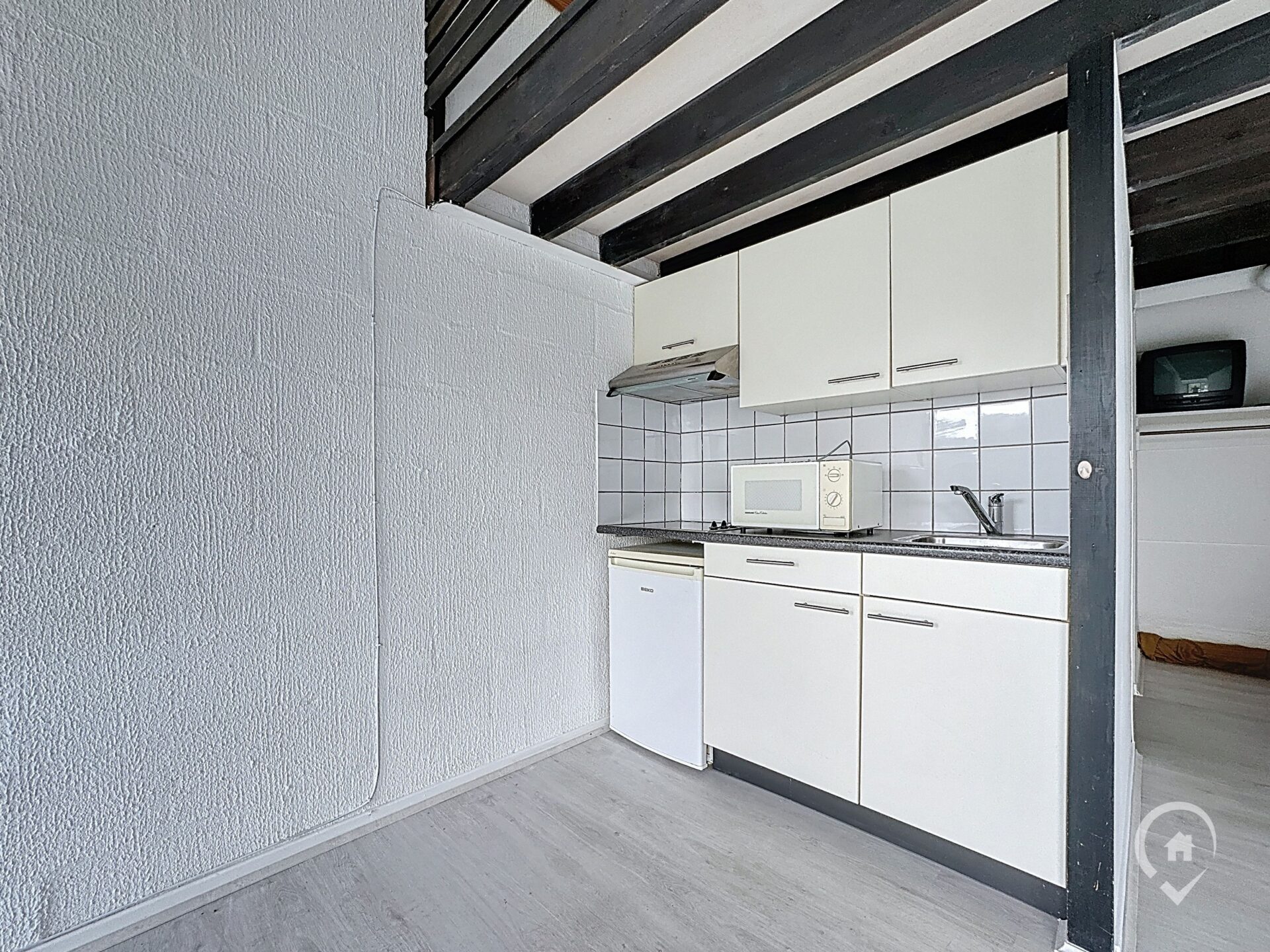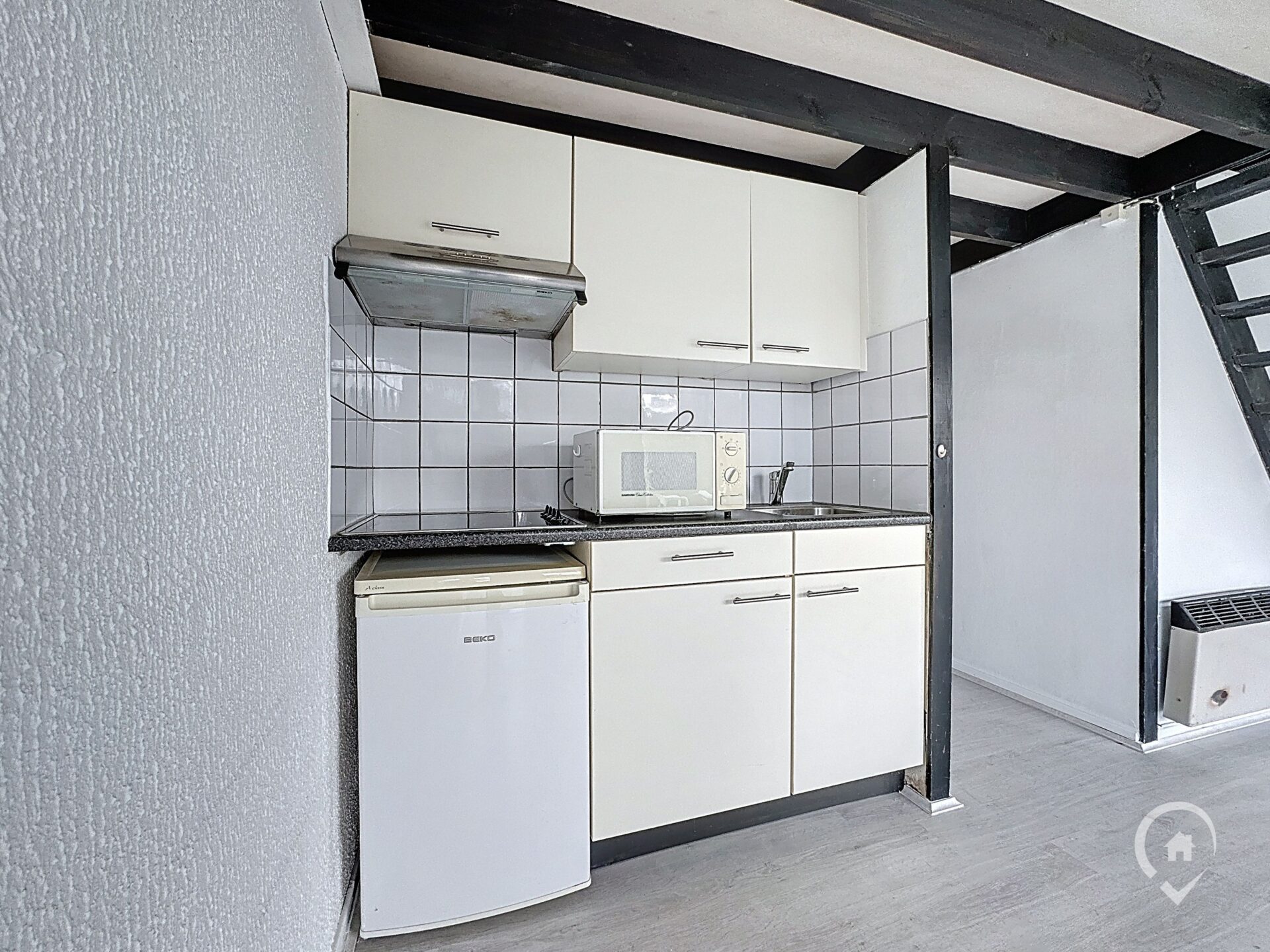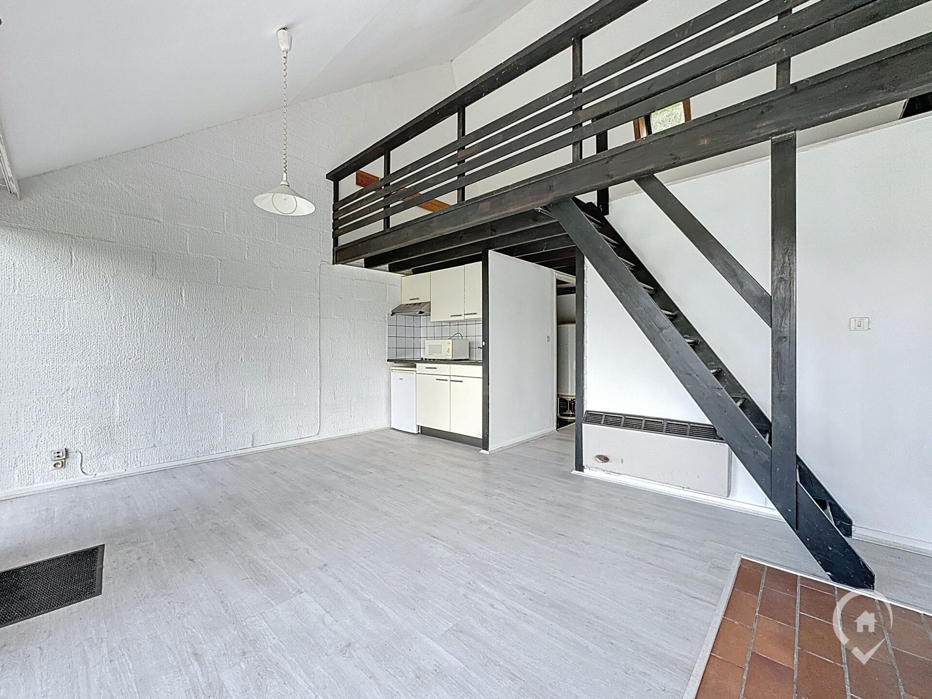 Gelijkvloers: leefruimte met open keuken, 1 slaapkamer, badkamer